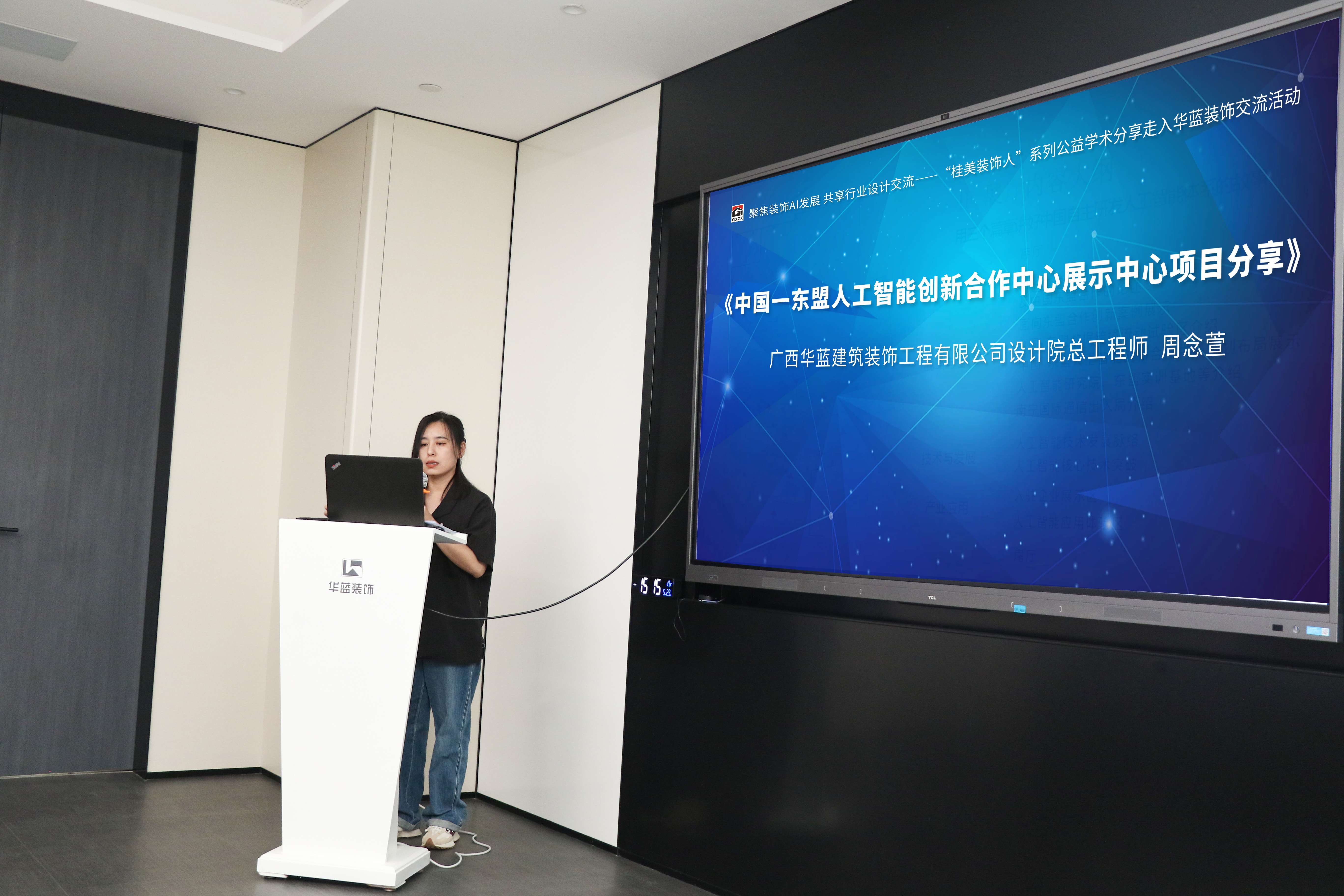 周念萱和赖东分享了《中国—东盟人工智能创新合作中心展示中心项目装饰装修分享》,深入探讨了项目的设计理念、空间布局和美学创新,深入探讨了功能与美学的融合创新路径和AI技术在建筑装饰设计中的应用实践与创新路径。