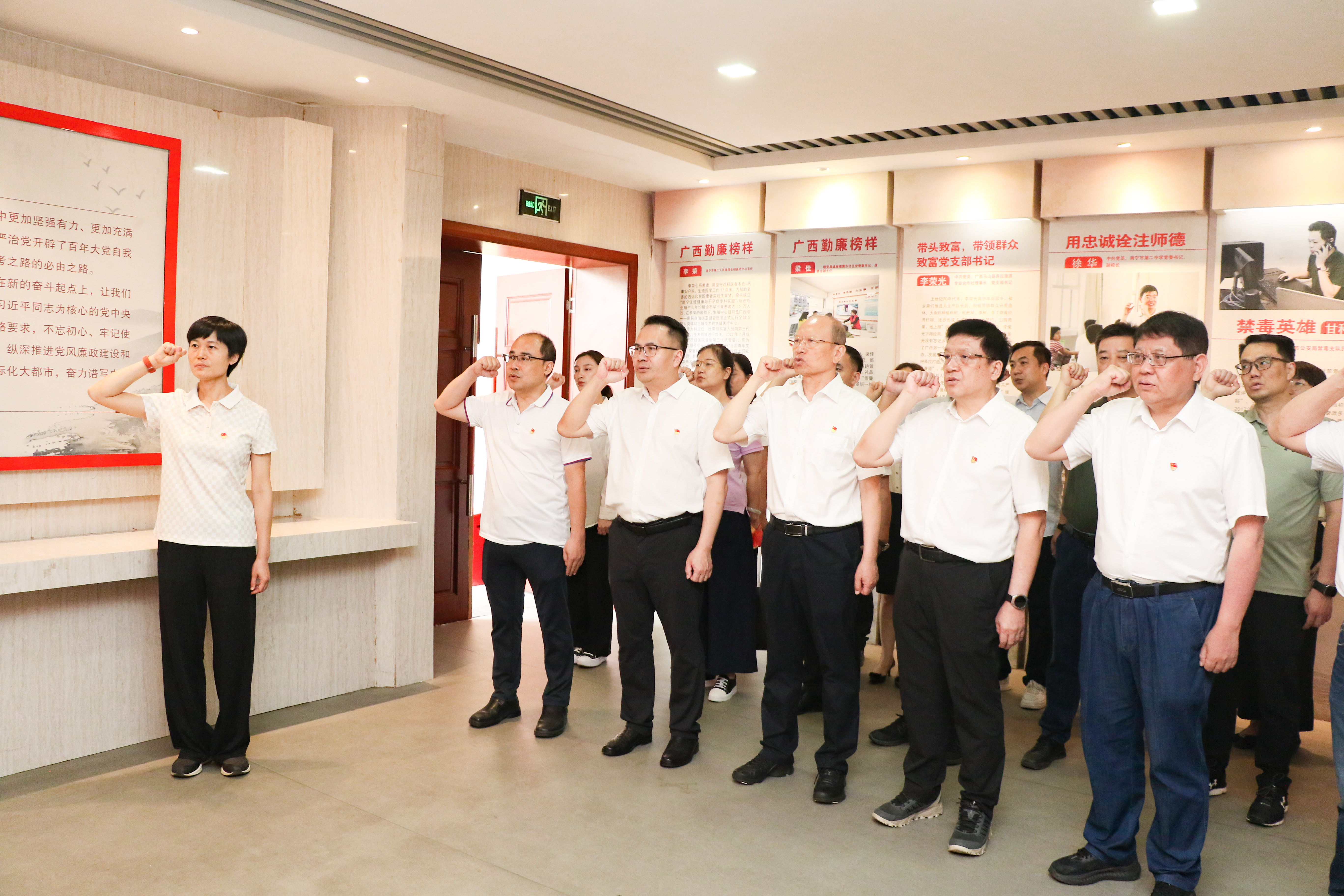 为贯彻落实二十届中央纪委四次全会和自治区纪委十二届五次全会精神,推动协会党支部深入贯彻中央八项规定精神学习教育走深走实,进一步增强党员干部警示教育、严明纪律规矩意识,筑牢拒腐防变思想防线,2025年6月5日上午,广西建筑装饰协会党支部与广西建筑业联合会党支部开展党建共建活动,组织党员干部一起赴南宁市反腐倡廉警示教育馆参观学习。广西建筑装饰协会党支部书记、会长庞耀国,广西建筑业联合会党支部书记、会长马冀,两家协会党员干部共30余人参加活动。