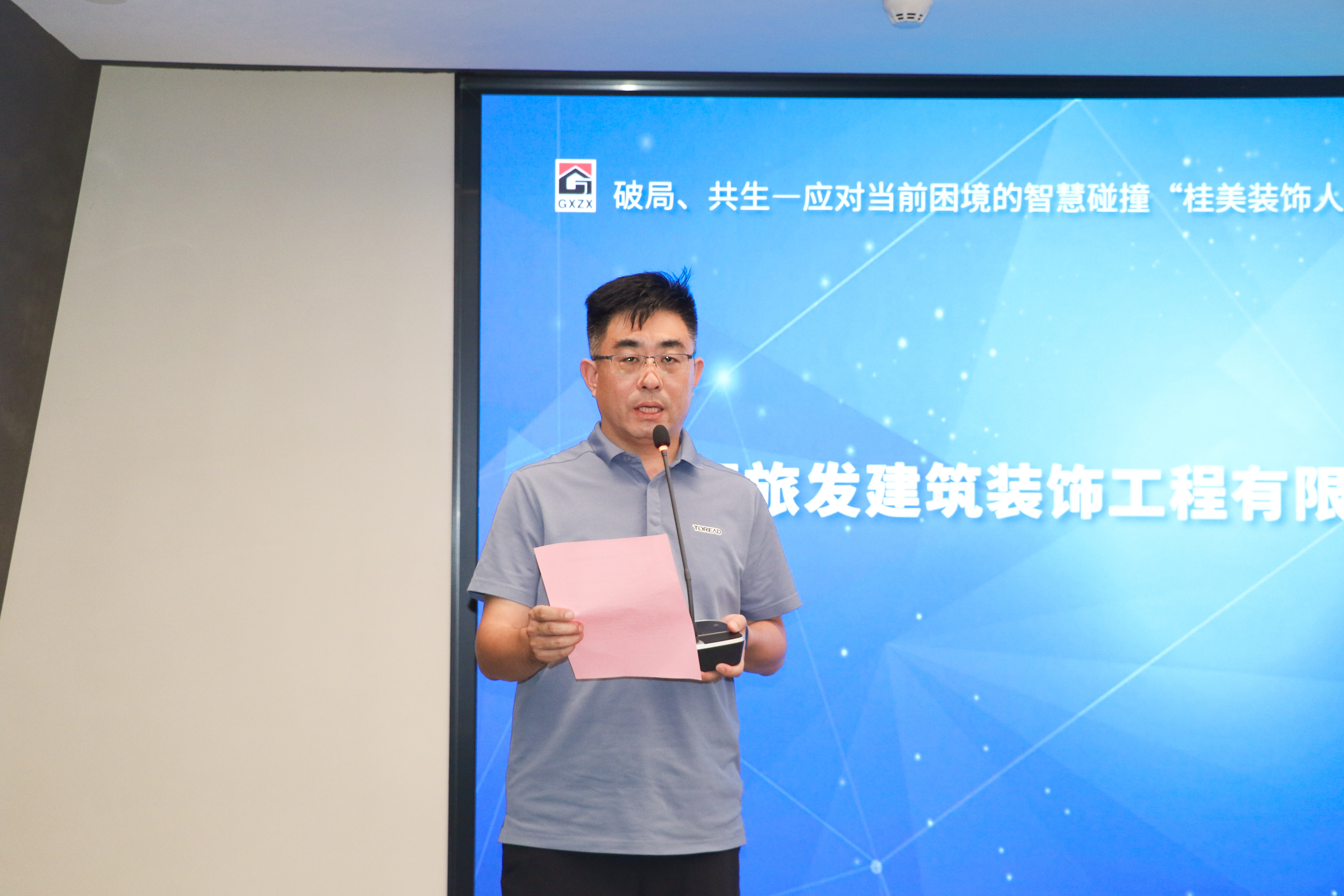 刘雪冬对协会精心组织本次广旅装饰专场分享活动表示感谢,对参会人员的到来表示热烈欢迎。他表示,当下装饰行业正面临前所未有的挑战:市场收缩、竞争加剧、技术迭代、理念创新加速、客户需求多元化。面对行业发展面临的新挑战,唯有不断提升设计水平和综合服务能力,才能在变化中谋求突破。今天,广旅装饰设计研究院马国彪院长及几位优秀设计师将带来实战案例分享,共同探讨装饰设计的发展、共同面对当下行业发展困局,如何才能出彩、出圈、出成绩。希望能给大家带来灵感、带来启迪、带来突破。