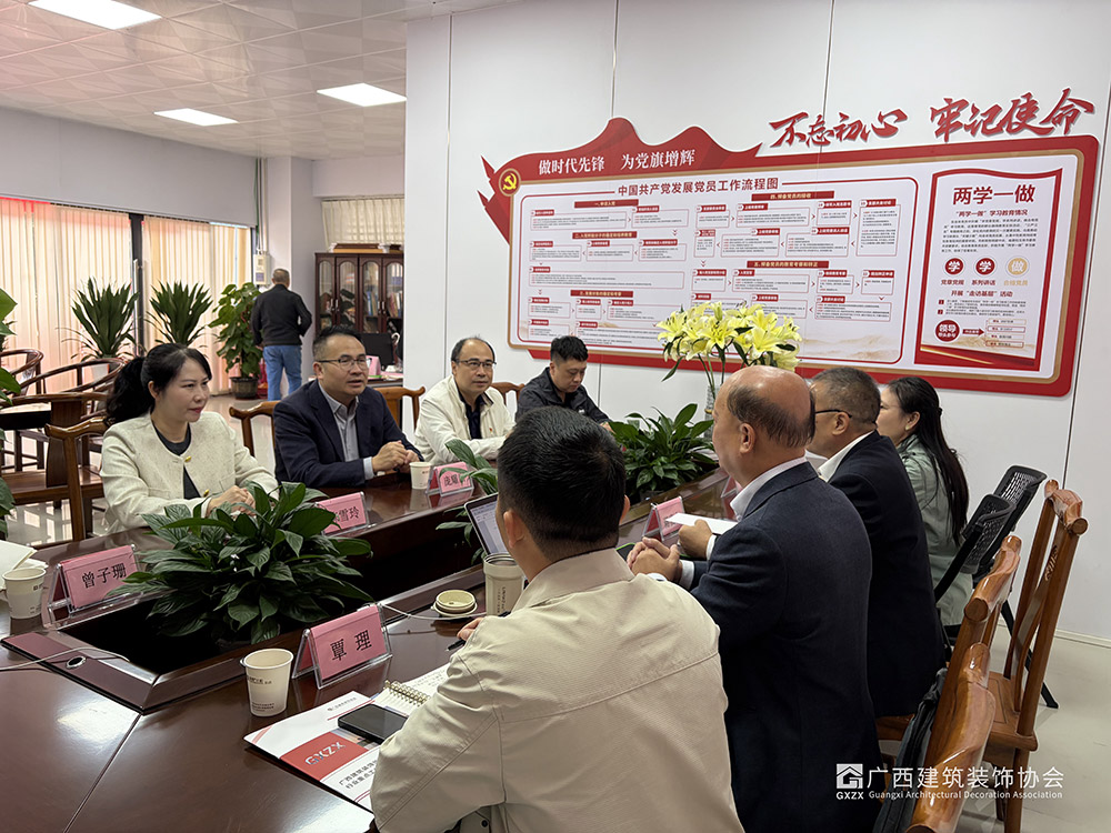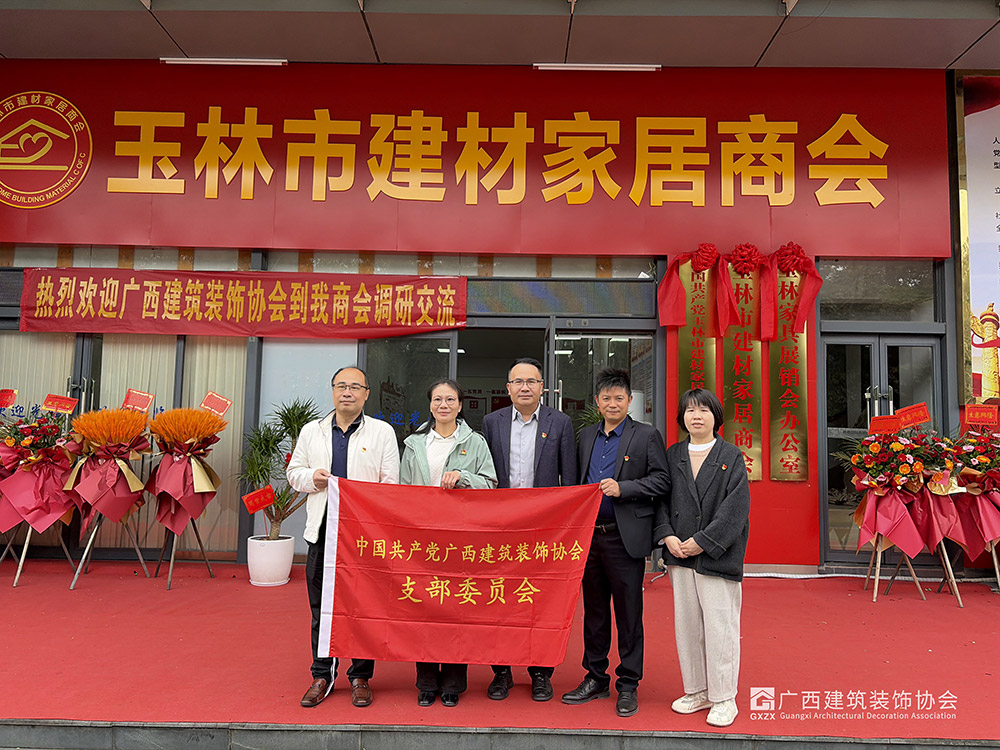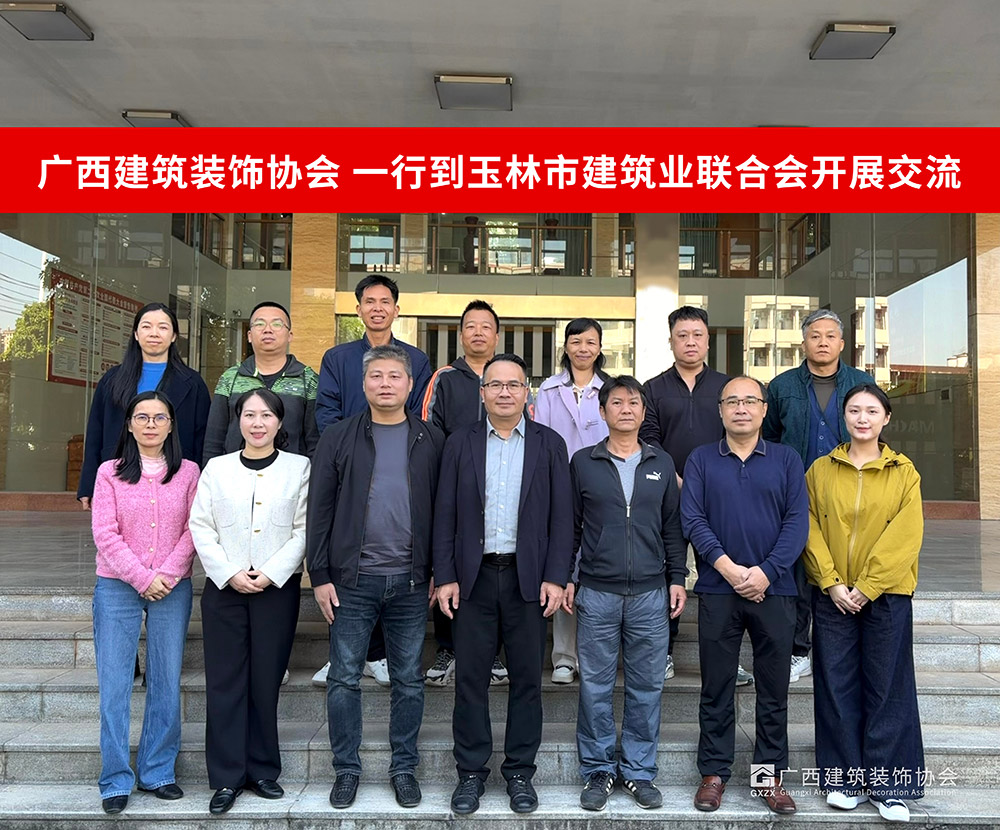 2025年11月23日~24日,协会党支部书记、会长庞耀国一行前往玉林市开展建筑装饰、家装产业专项调研工作。协会一行先后到访玉林市建材家居商会、玉林市建筑业联合会,同时双方开展党建共建及相关行业交流活动。协会副会长黄榆、秘书长陈雪玲等相关分会秘书处负责人参加活动。