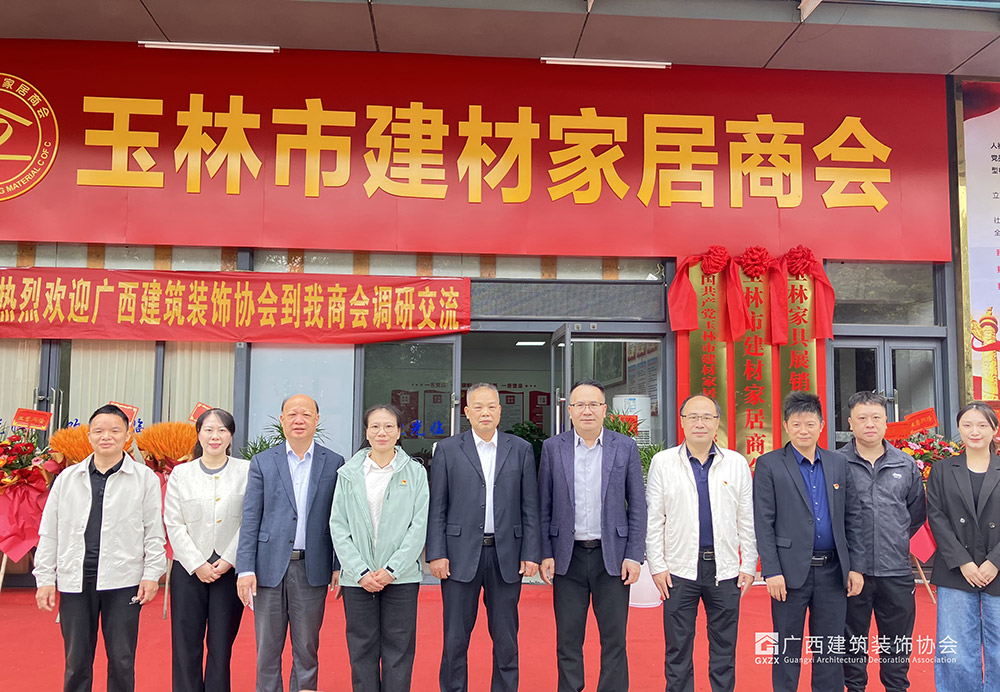 11月23日,协会一行赴玉林市建材家居商会开展调研交流,玉林市建材家居商会会长蒋贵全、常务副会长兼秘书长会刘承忠、党支部书记胡雪梅、副会长覃理、陈豪及秘书处办公室主任谭书雁等主要负责人热情接待了协会一行。双方首先学习了二十届四中全会精神并就党建共建工作进行了深入探讨,分享了各自在党建工作中的经验和做法,一致认为党建共建是加强双方之间联系、促进共同发展的重要途径。随后,双方围绕玉林市家装及家居建材市场经营发展情况、市场动态以及面临的挑战等议题展开了交流。