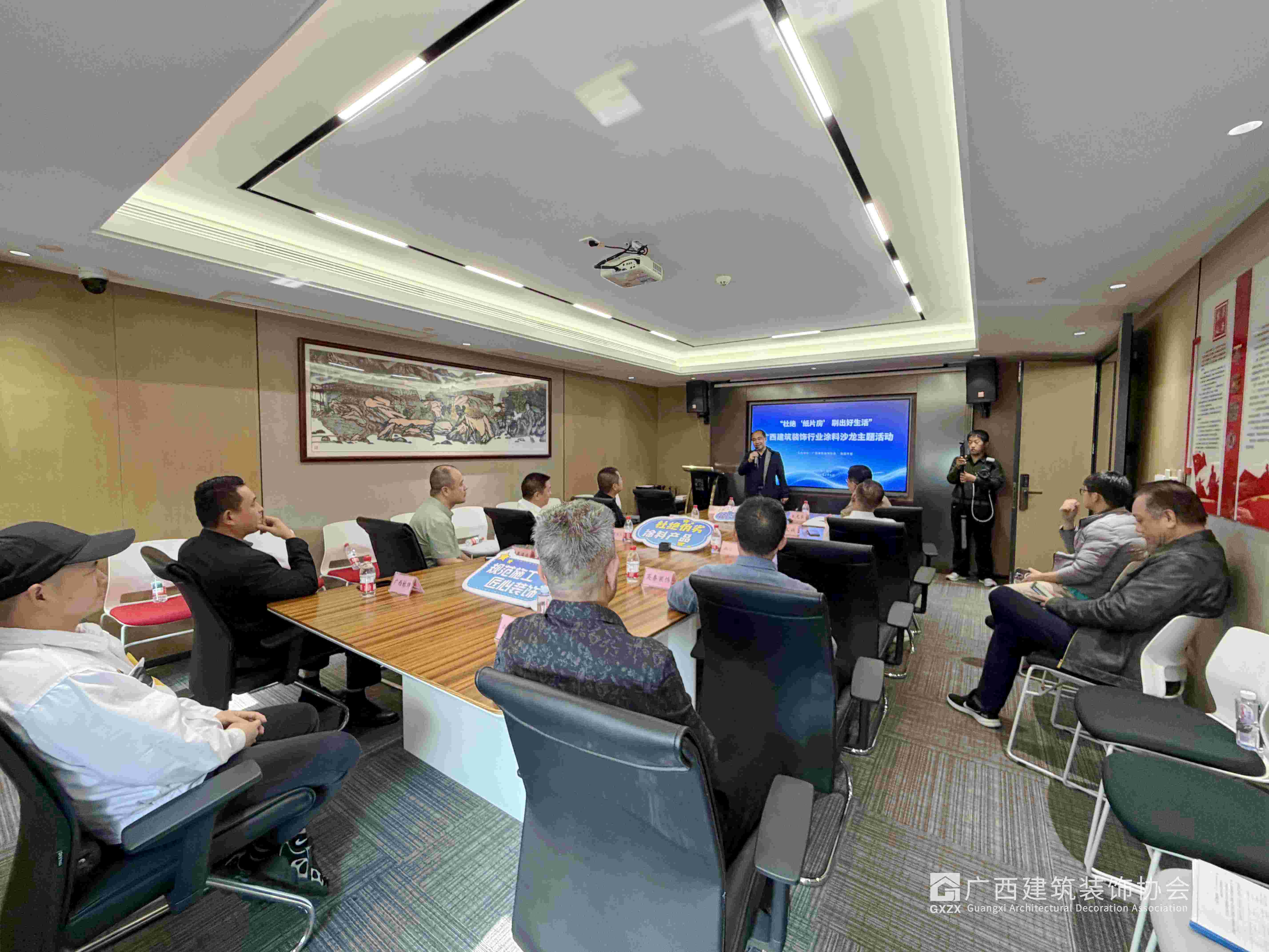 2026年2月6日,由广西建筑装饰协会、南国早报联合主办的"杜绝‘纸片房‘ 刷出好生活"广西建筑装饰行业涂料沙龙主题活动顺利举办。广西建筑装饰协会副会长黄榆、南国早报美居工作室主任王光家、协会专家委员会常务副主任兼总工程师谭谦、东葛创艺装饰工程总监吴文战、会员单位涂料企业代表、消费者代表等15人参加本次活动。活动由黄榆主持。