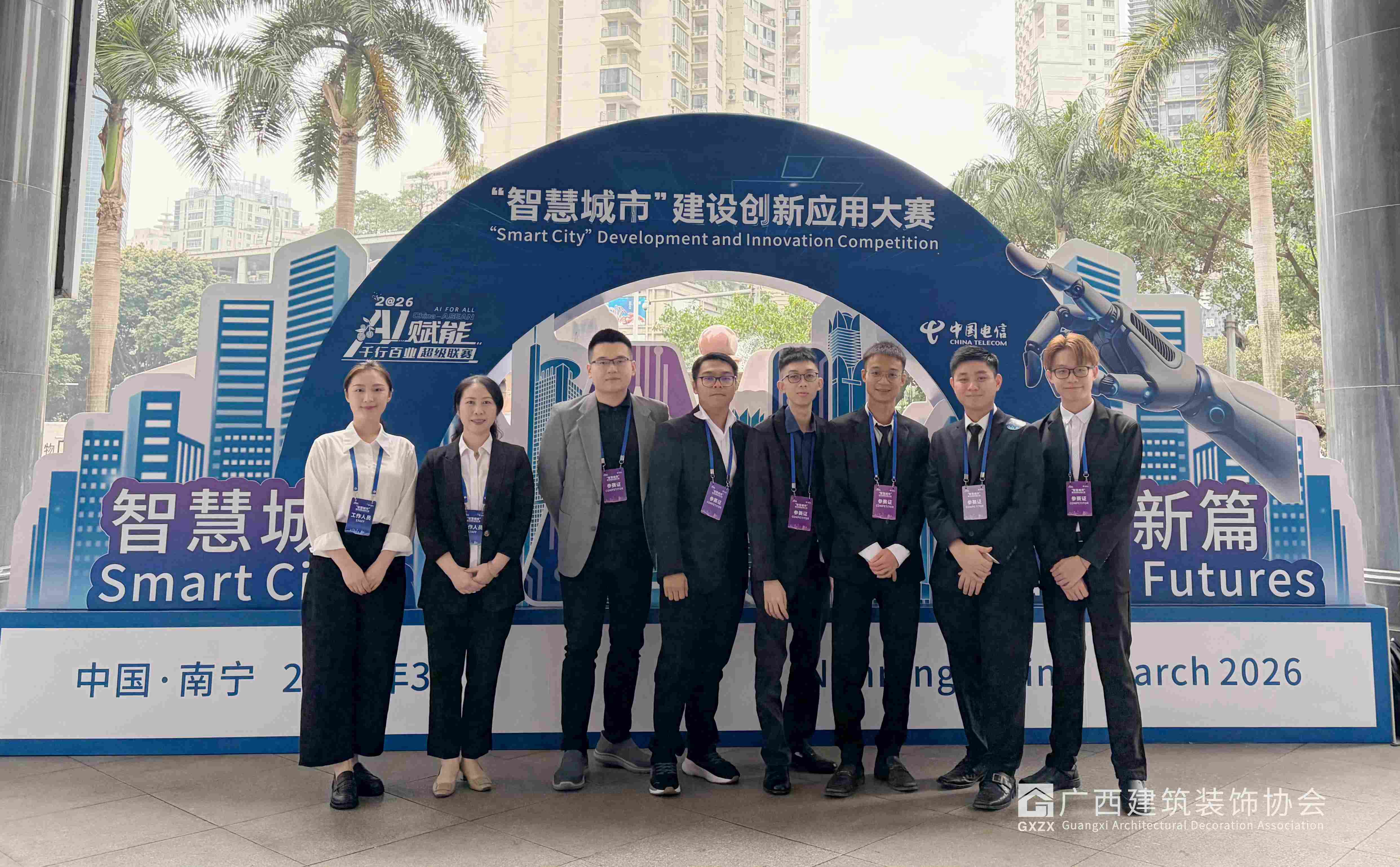 2026 年 3 月 28 日 - 30 日,由广西壮族自治区住房和城乡建设厅、广西壮族自治区教育厅、广西壮族自治区总工会、南宁市人民政府联合主办的AI赋能千行百业超级联赛(A超)“智慧城市”建设创新应用大赛顺利举办,国内外多支专业团队同台竞技。广西建筑装饰协会秘书长陈雪玲、组织联络部主任助理曾子珊全程陪同接待马来西亚拉曼理工大学代表团,全力保障代表团参赛各项事宜,最终该校代表团凭借优秀的创新成果,斩获大赛高校赛道二等奖。