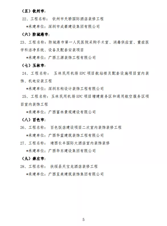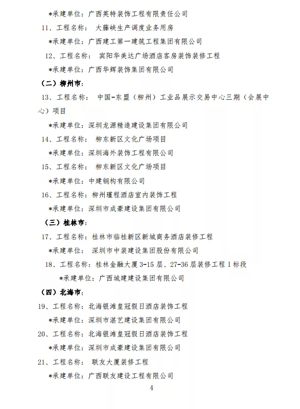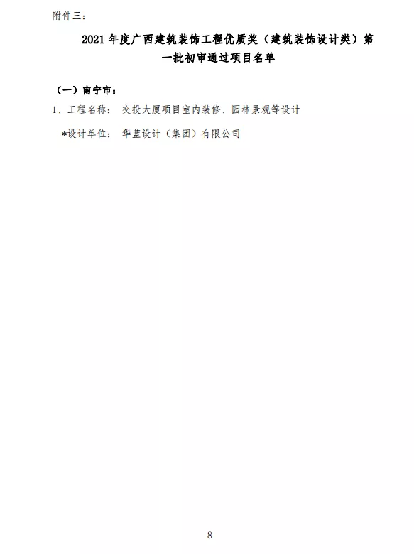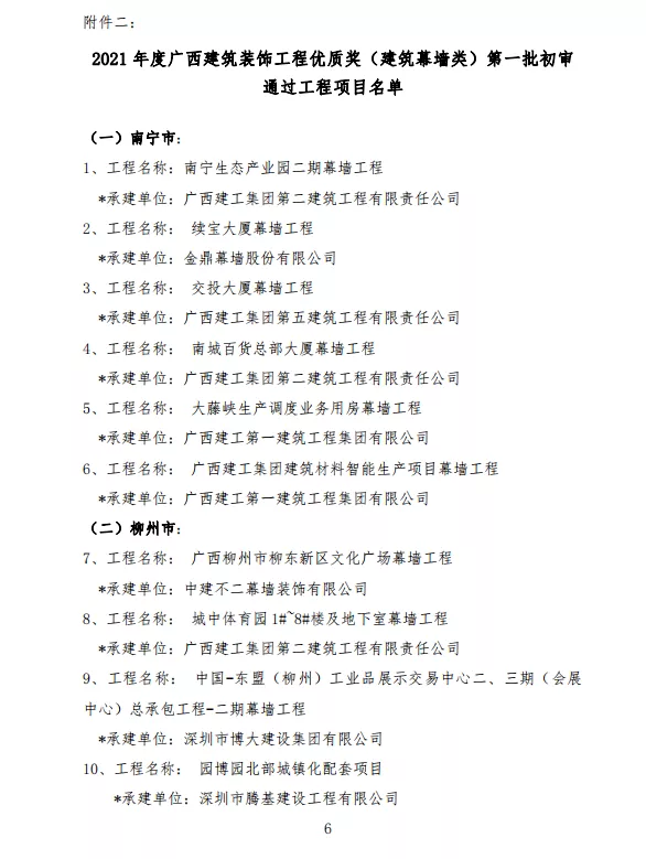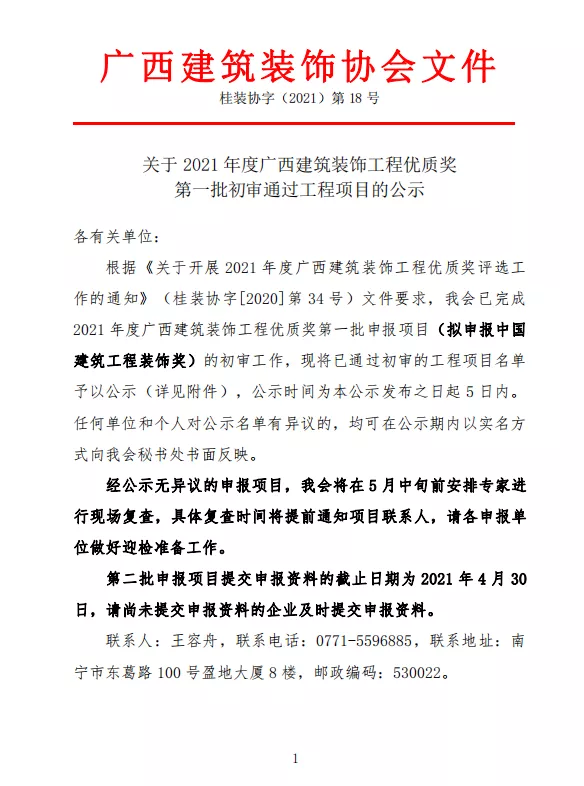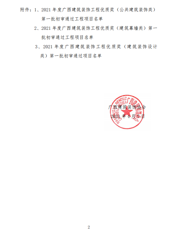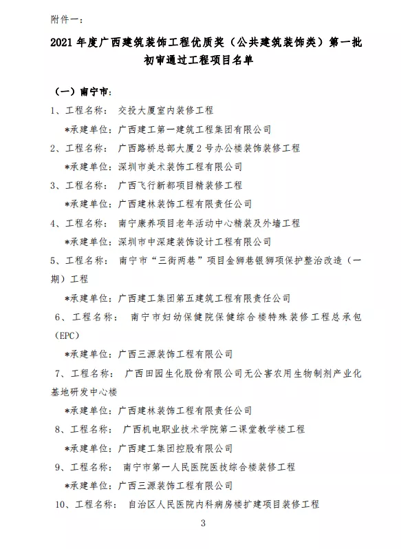 关于2021年度广西建筑装饰工程优质奖第一批初审通过工程项目的公示