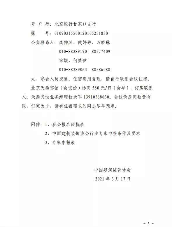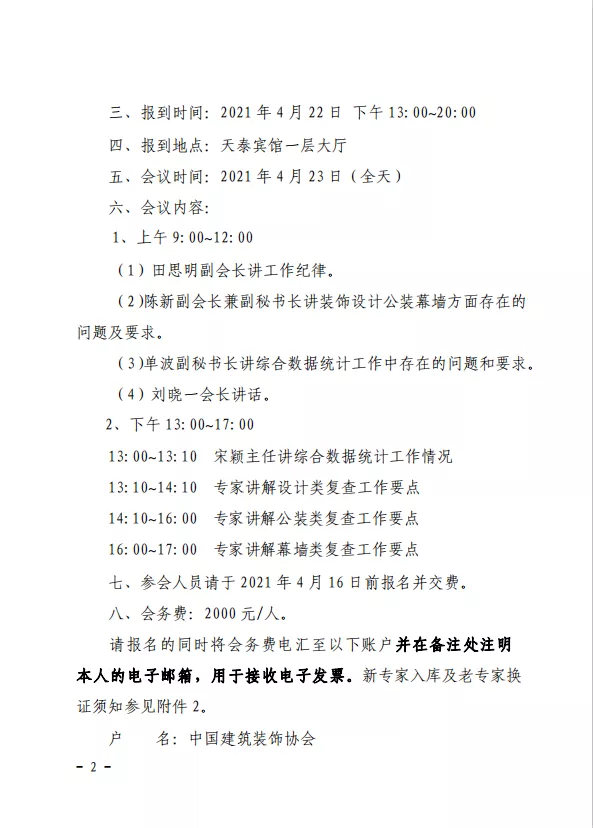 现将中装协《关于举办行业专家交流培训和统计工作会议的通知》(中装协〔2021〕24 号,详见附件1)转发给你们,有意向参加会议的专家或会员企业,请根据文件要求,于2021年4月16日前报名并缴费,报名表请直接发送给中装协会务联系人。
