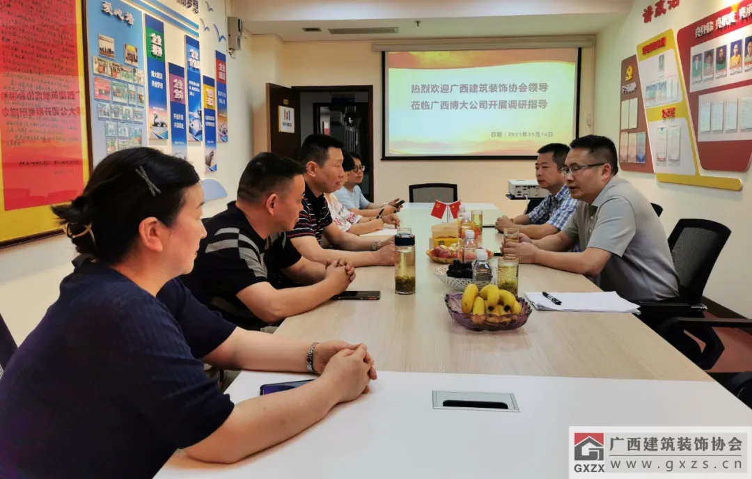 2021年4月29日-5月14日,协会会长庞耀国带队继续开展“倾听会员心声 提升服务能力”系列调研活动,走进协会副会长单位金鼎幕墙股份有限公司以及柳州市的部分会员企业,与企业负责人座谈,详细了解各企业创广西建筑装饰工程优质奖工作情况、装配式装修(工厂化生产)应用及发展情况、企业对协会秘书处工作的建议和意见,为企业答疑解惑,加强与会员企业的互动交流。各受访企业负责人对协会一行的到来表示衷心感谢和热烈欢迎,分别介绍了企业的创优计划、装配式工厂化装修应用情况等,同时希望协会加强对企业的政策引导,帮助企业了解装配式装修应用发展前沿新技术,多组织观摩交流活动,将行业内优秀技术工艺推广到各个会员企业。各受访企业也表示将继续大力配合协会工作,在协会的帮助下努力在创优夺杯、科技成果等方面不断取得新突破,为广西建筑装饰行业发展作出应有的贡献。