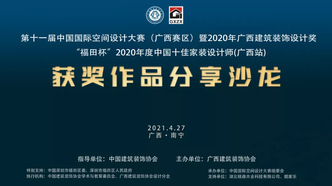 2021年4月27日,协会在南宁举办第十一届中国国际空间设计大赛(广西赛区)暨2020年广西建筑装饰设计奖获奖作品分享沙龙,来自全区各地约300名企业、高校的设计师参加活动。