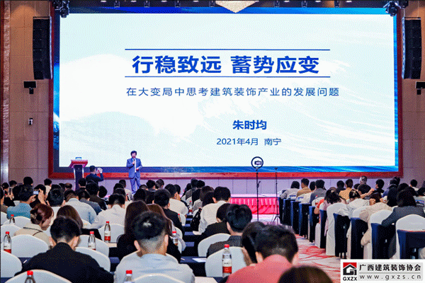 中国建筑装饰协会学术与教育委员会秘书长、中国国际空间设计大赛组委会主任朱时均作了题为“行稳致远 蓄势应变--在大变局中思考建筑装饰产业的发展问题”的精彩分享,他认为中国建筑装饰企业在当前的大变局的时代背景下,应看清形势,处变不惊,通过苦练内功,积蓄力量,蓄势应变,在变局中捕捉破局的机会,重塑产业格局。