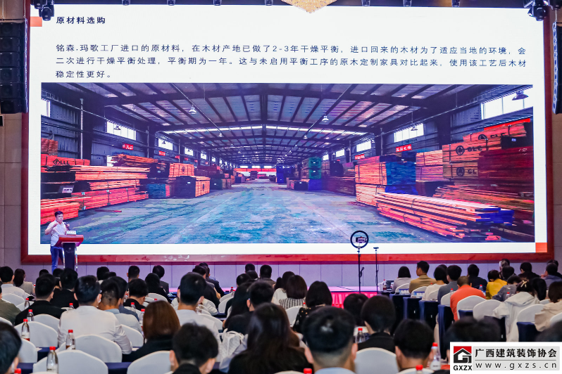 湖北铭森木业科技有限公司销售总监王绪文在会上介绍了“铭森玛歌”原木定制产品的特点和生产情况。中国建筑装饰协会学术与教育委员会秘书长、中国国际空间设计大赛组委会主任朱时均向王绪文总监颁发了中国住宅装饰优质供应商牌匾。