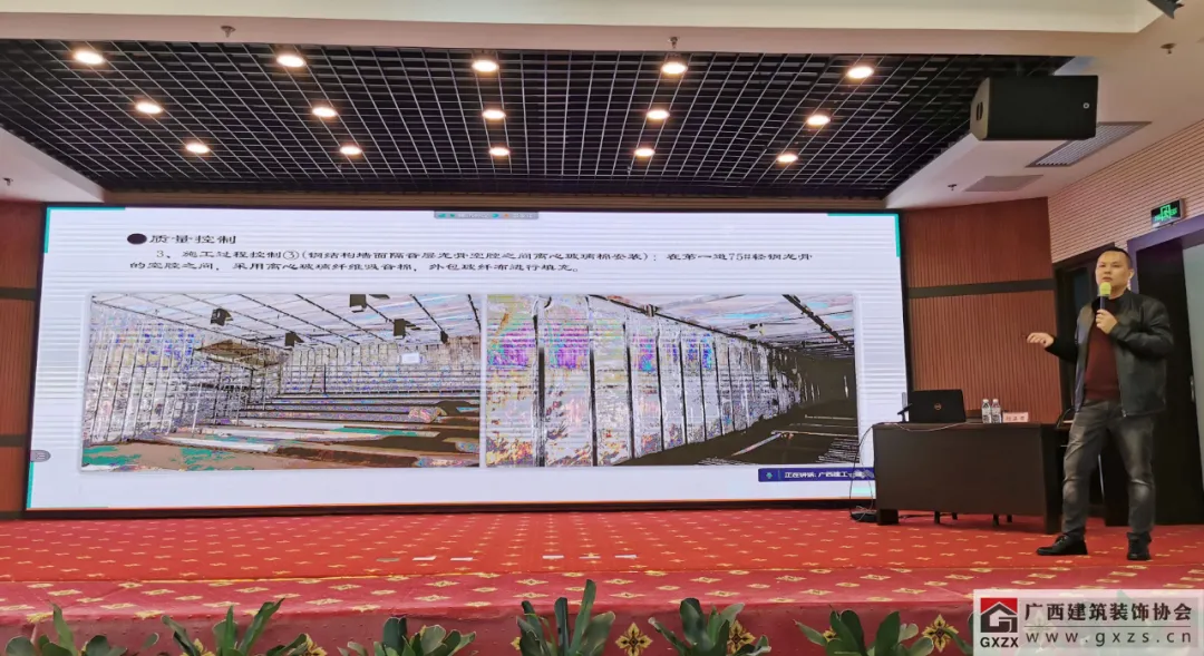 协会专家,广西建林装饰工程有限责任公司总工程师、高级工程师、一级建造师颜显君在会上分享了“建筑装饰工程创优资料收集整理与注意事项”。