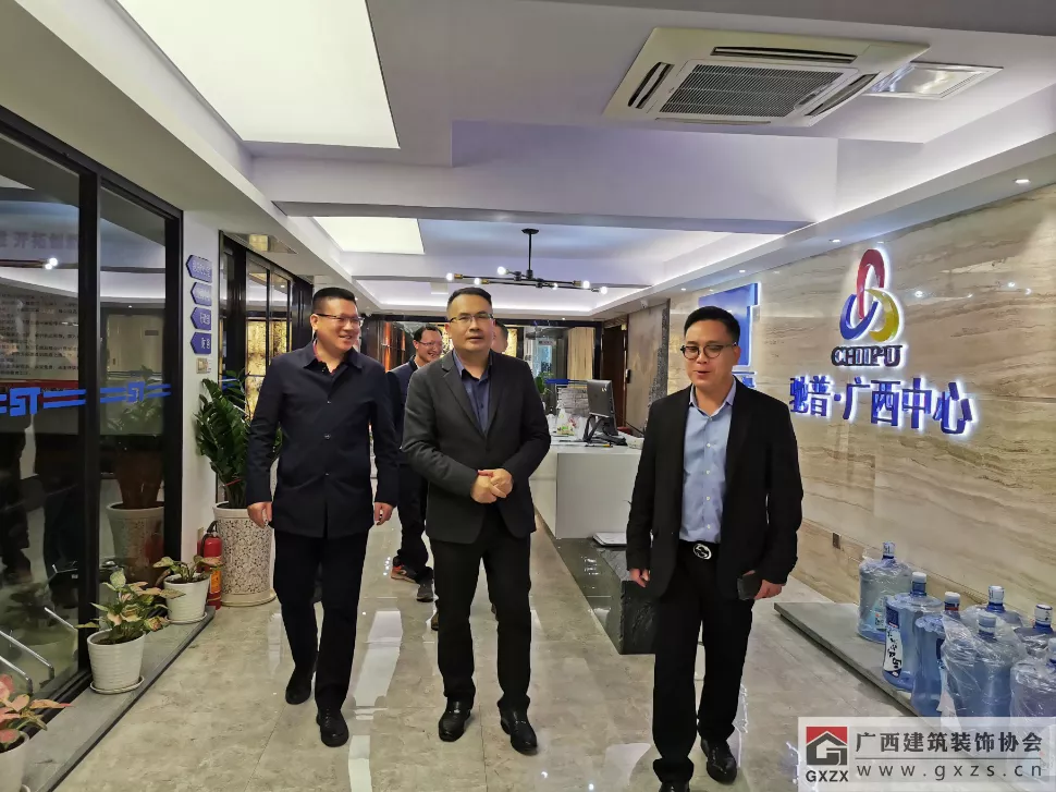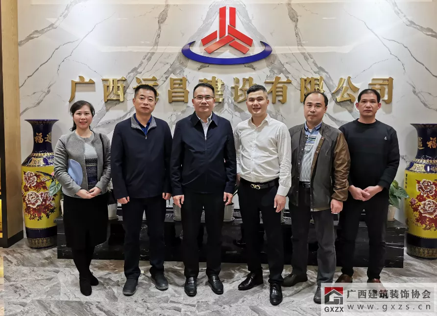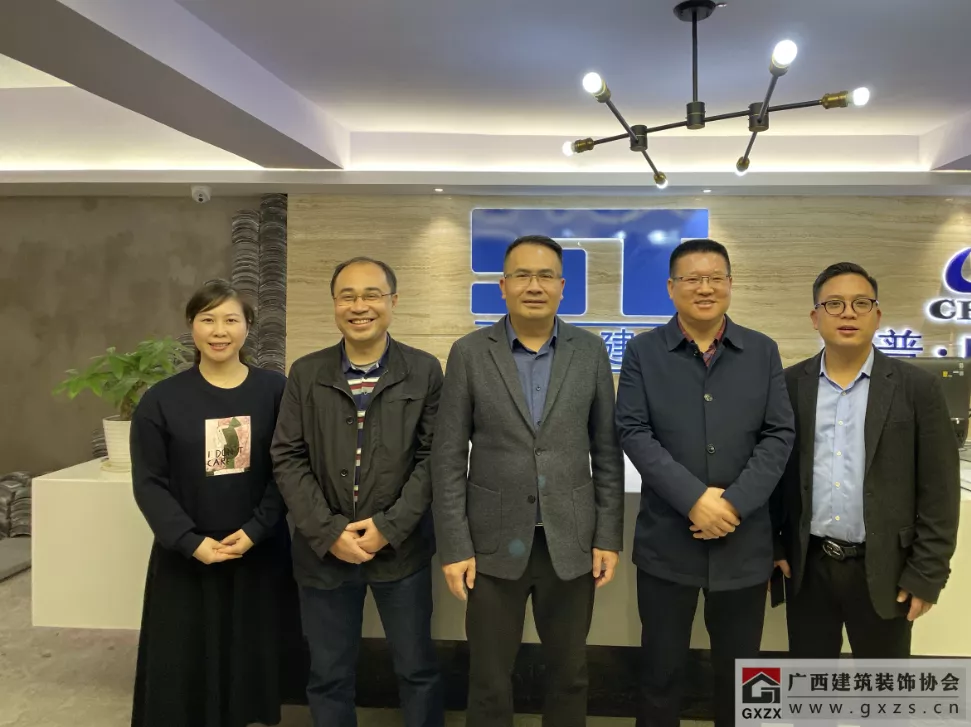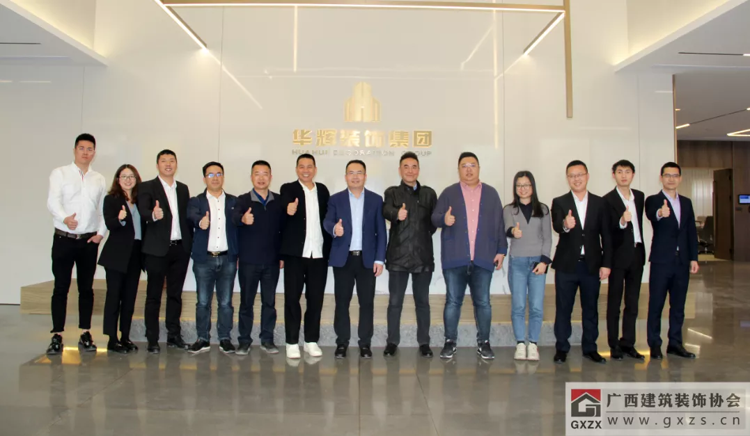 协会一行与广西远昌建设有限公司总经理李熙兵(右三)等合影 走进协会副会长单位:广西华辉装饰集团有限公司