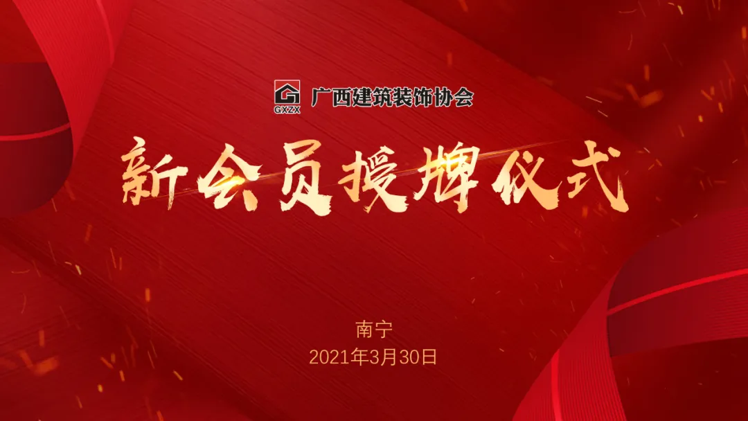 2021年3月30日,协会举办新入会会员单位颁证授牌仪式,为新加入广西建筑装饰协会的企业颁证授牌。参与本次活动的企业有:广西华利达建筑有限公司、深圳市万德建设集团股份有限公司广西分公司、广西美饰美家装饰工程有限公司、广西富晟建筑装饰工程有限公司、广西壁安新型建材有限责任公司、广西荣美建筑装饰工程有限公司、广西大将百诺装饰工程设计有限公司、广西裕华建设集团有限公司、广西鑫赞建设工程有限公司、广西奇佳建筑设计有限公司。
