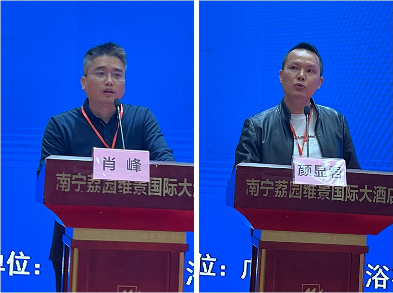 广西建工第一建筑工程集团有限公司 幕墙门窗设计部经理、高级工程师肖峰和广西建林装饰工程有限责任公司总工程师颜显君分别上台,分享了他们作为专家参与协会工作的心德体会以及参加本次培训的收获。