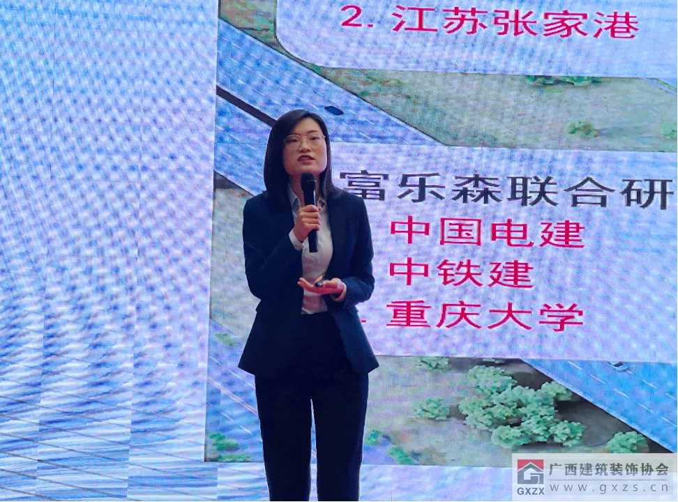 贵州富乐森装配式建筑工业有限公司市场部经理张琼作为支持单位代表在会上介绍了“装配式高隔声墙体在室内空间的运用”。