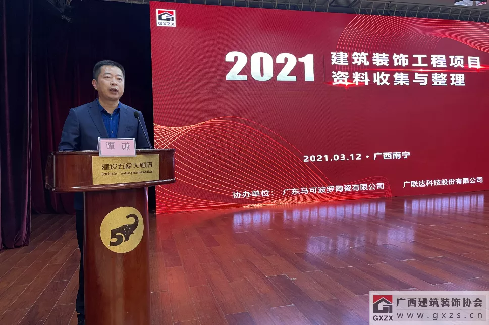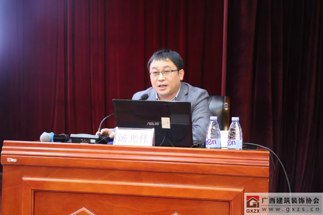 广西建筑装饰协会副秘书长兼施工委主任、正高级工程师谭谦为参会代表介绍了“广西建筑装饰工程优质奖”、“中国建筑工程装饰奖”及“中国建筑装饰行业科技奖”的基本情况。
