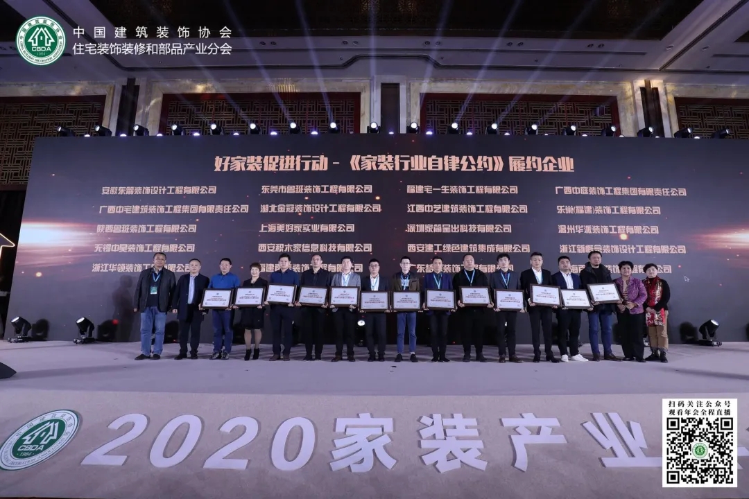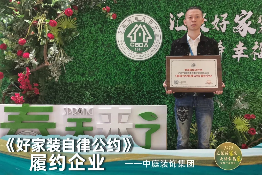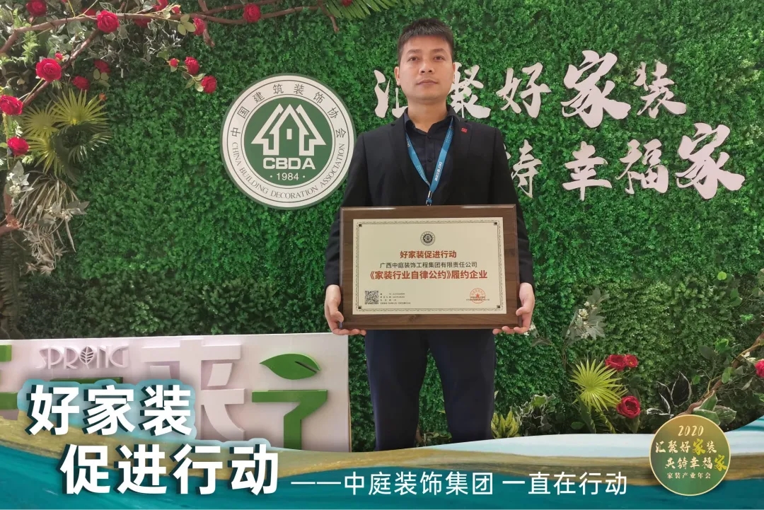 本次年会发布了78家《中国家装行业自律公约》履约企业,广西中庭装饰集团也荣获了《中国家装行业自律公约》履约企业荣誉称号。年会现场 还发布了29家品质承诺企业。并向传播家装行业声音、连接行业与消费者“家装行业推动者”——大众媒体致以全行业的敬意。