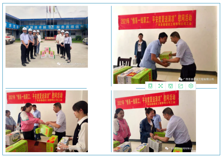 三月三春暖大地,再一度歌扬壮乡。4月14号圣泰工会委员会开展2021年为期4天的“情系一线职工,平安度夏送清凉”慰问活动。为此专门成立了慰问小组,给一线的圣泰职工送去关心和问候。