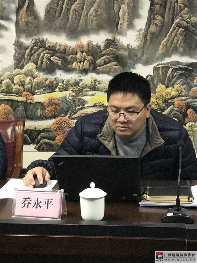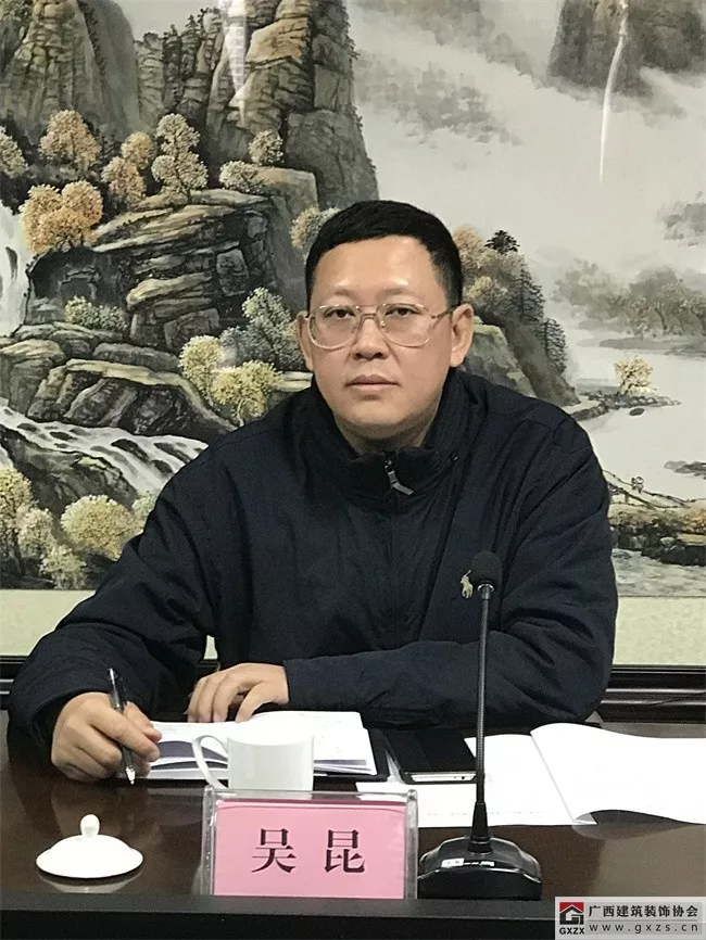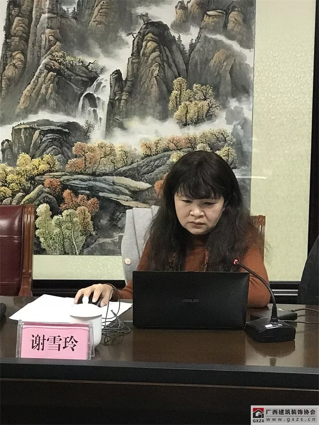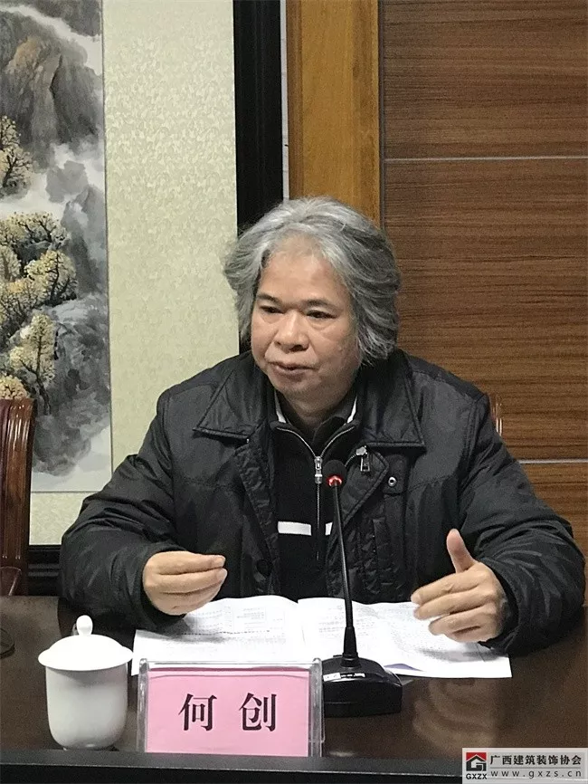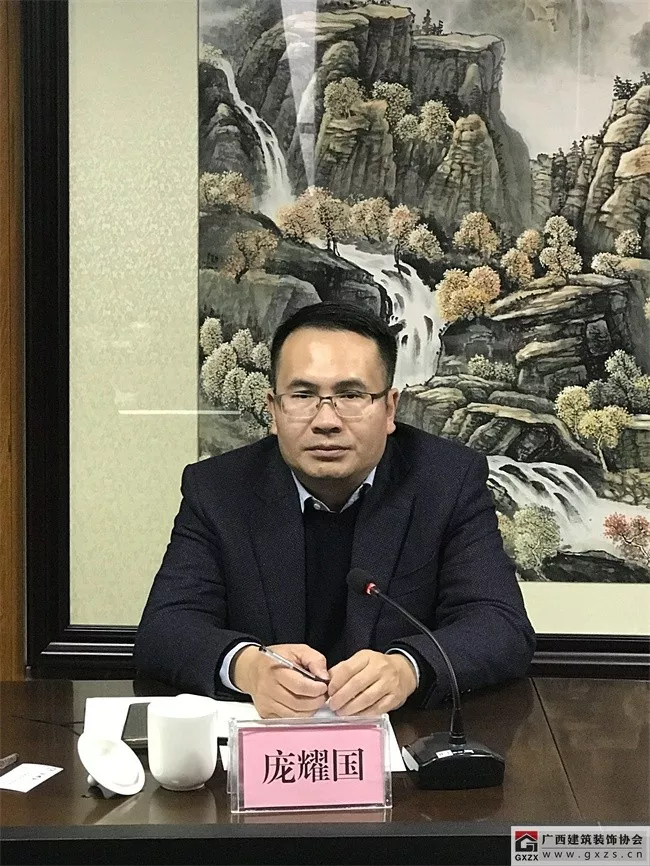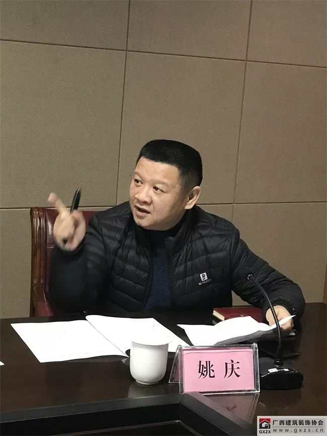 广西建筑装饰协会庞耀国会长主持内审会议,并介绍了《设计标准》编制工作的起因缘由。