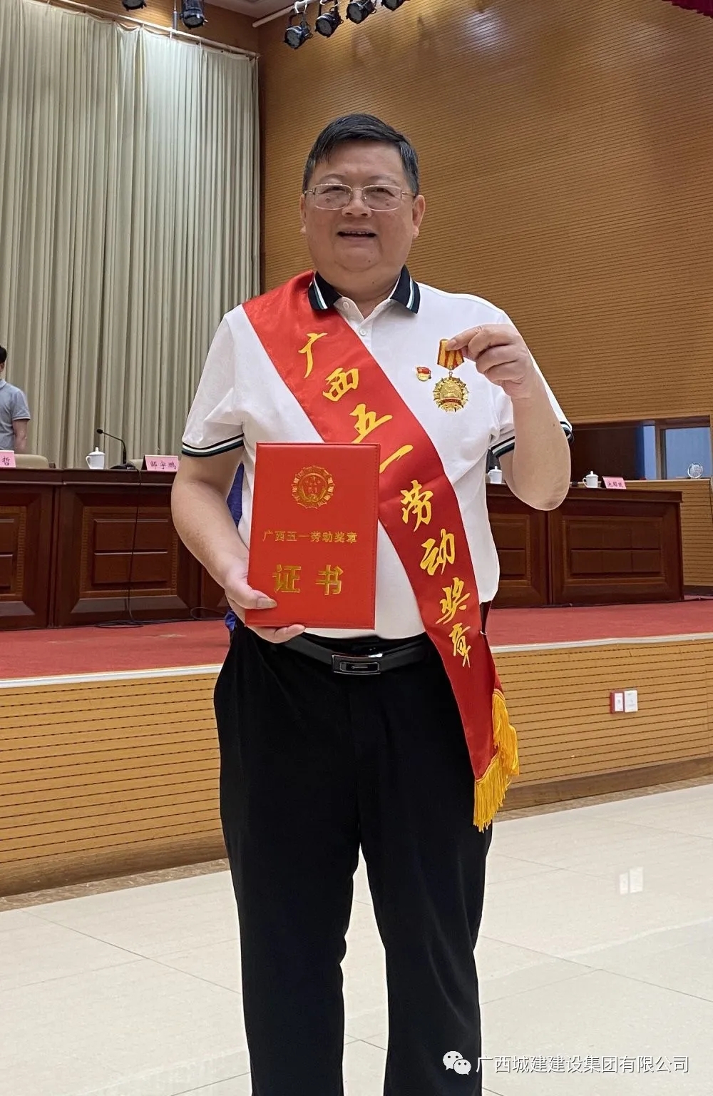 继近日光荣当选北流市住建行业党委副书记,并连任北流市第四届建筑业联合会会长后,广西城建建设集团董事局主席周伟又获一项殊荣——广西五一劳动奖章,2021年4月30日,在广西总工会举办的“ 2021年全国、广西五一劳动奖和全国、广西工人先锋号的颁发仪式”玉林市分会场,玉林市邹宇鹏副市长为周伟亲自授奖,该奖项今年在玉林仅有六位表现突出的各界人士获得。