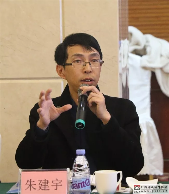 协会副会长、广西华蓝建筑装饰工程有限公司董事长朱建宇结合企业实际,从市场的角度,对专业承包公司设计版块如何应对国家建筑市场的新政策做了发言,并特别指出,企业要紧跟技术趋势发展,绿色发展特别是BIM技术的应用推广,使得设计图纸、施工现场和生产设备的无缝对接,精准、高效、快捷;这些变化将促进装饰行业从业人员思维转变和专业素养、技能的提升,同时更是装饰企业提高核心竞争力及实现技术升级的重要途径,必将促进装饰行业转型升级的大发展。