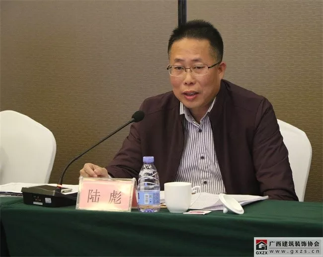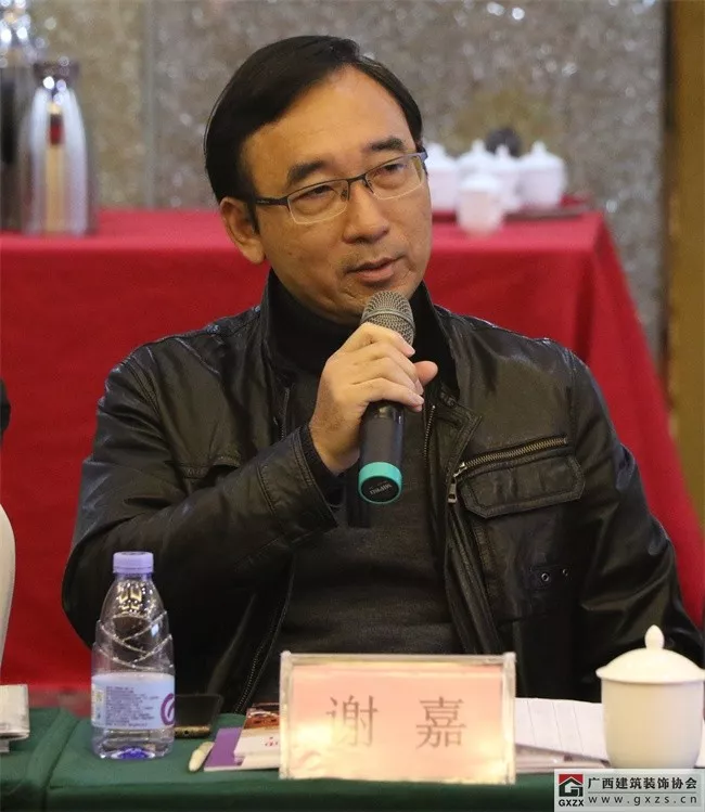协会常务理事、广西建工集团联合建设有限公司董事长陆彪结合企业的发展,对在总承包、EPC模式的建筑业模式下,如何持续推动企业转型升级谈了经验体会,希望今后能够与建筑装饰设计专包企业强强联合,合作共赢。