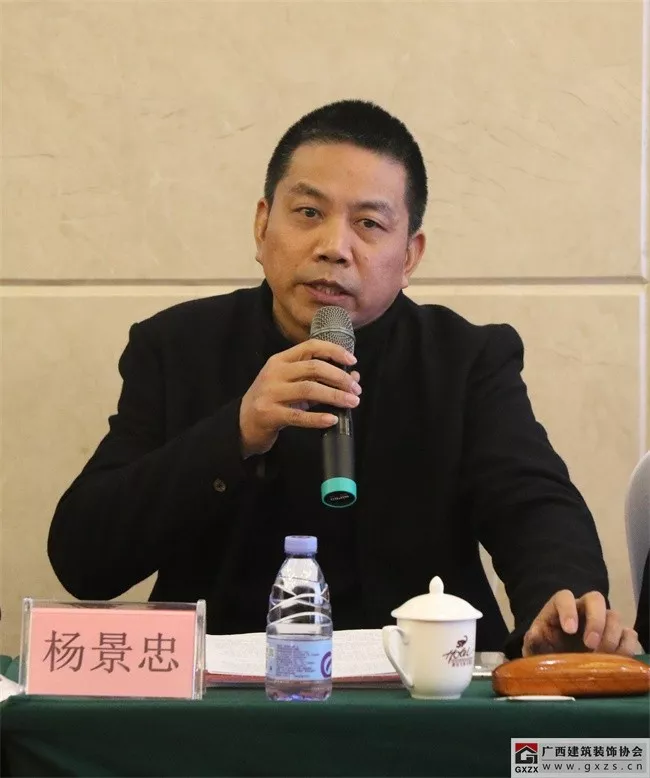 协会副会长、广西华辉装饰集团有限公司董事长杨景忠指出,在行业发展形势下行,劳动力成本上升,消费升级以及政府政策引导的背景下,建筑装饰行业推行装配式装饰,追求创新式发展,实现行业转型升级是未来行业发展的方向。华辉集团2012年开始走工厂化装修路线,全力打造绿色节能的装配式装修,加大技术研发,将“设计标准化、生产模块化、施工装配化、管理信息化”的四化管理应用到公司的各类工程项目中,取得了较好成效。杨景忠同时强调,必须重视企业文化建设,“谁拥有了劳务,谁就拥有了市场”,产品和服务是由从事产品和服务工作的人创造的,崇尚“工匠精神”、尊重“工匠人”,走建筑工人产业化发展之路是一种必然选择。