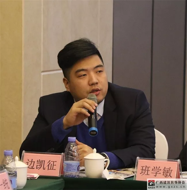 贵港市装饰企业代表、贵港市卓然装饰设计工程有限公司总经理陈康毅:正在积极筹建贵港市建筑装饰协会,希望能够得到广西住建厅和广西建筑装饰协会的指导支持,推动贵港建筑装饰行业的发展和规范。