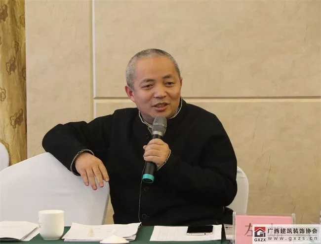 庞耀国会长对各位企业家百忙之中参加研讨,表示感谢!他说,协会作为广西唯一非营利的行业自律性五A级法人社团组织,始终明确自身定位,坚持服务宗旨。协会新时期的任务是加快培育一批优质品牌企业,扶持更多的龙头企业、先进企业、强优企业,做专做精建筑装饰企业,帮助企业拓展市场,促进设计、施工、材料厂商深度合作,做强做大建筑装饰行业!希望大家为协会发展、为行业发展积极建言。