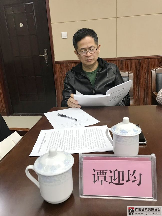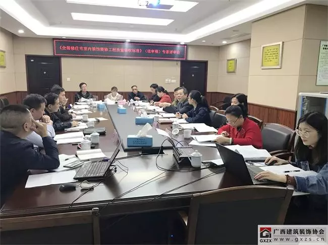 由广西住房和城乡建设厅批准立项,广西建筑装饰协会、广西建筑科学研究院主编的广西工程建设地方标准《广西全装修住宅室内装饰装修工程质量验收标准》(以下简称《标准》)已编制完成。为进一步完善该标准,2019年3月27日上午,由广西住房和城乡建设厅标准定额处在南宁市广西建设大厦2楼自治区劳保办会议室,组织专家对《标准》进行评审。参加会议的有建筑学、室内装饰装修、工民建等专业的5位评审专家,以及广西住房和城乡建设厅设计处、建管处、房产处、标定处,自治区质量安全监督总站,广西工程建设标准化协会等相关处(站)、协会代表。同时,参加评审会的还有主编单位代表广西建筑装饰协会副秘书长兼施工委主任谭谦,以及广西建工集团第一建筑工程有限责任公司、广西同盛建筑装饰工程有限公司、广西品匠家居装饰工程集团有限公司等参编单位的编委专家代表,共18人参加了此次会议。