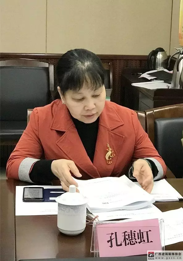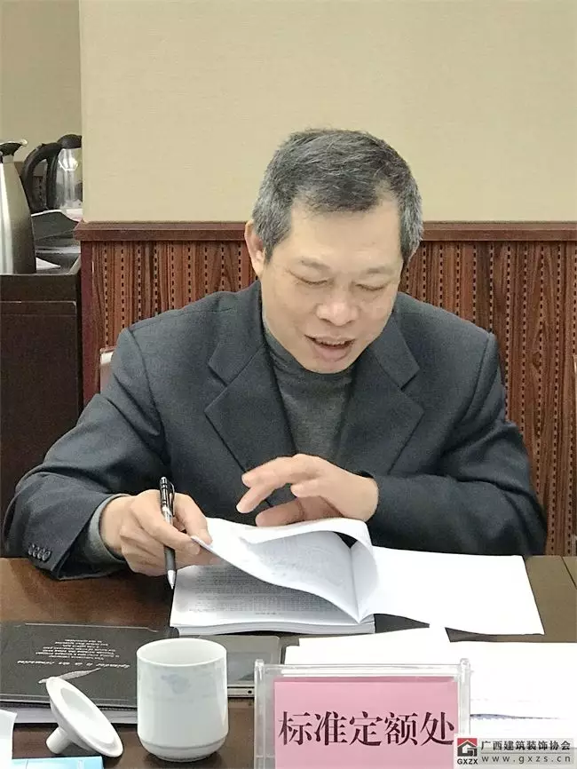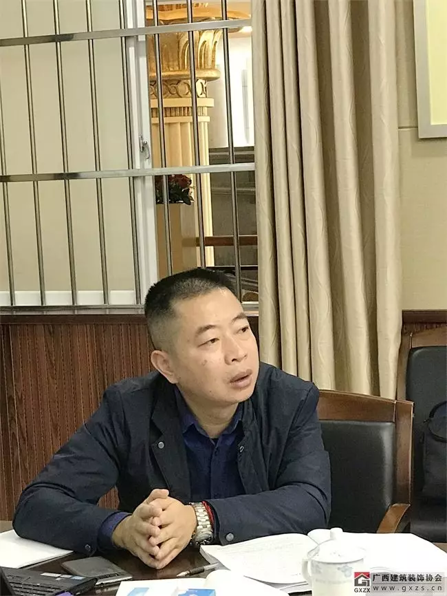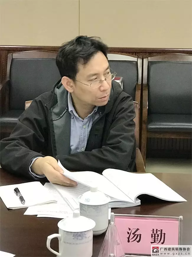 广西建筑装饰协会副秘书长兼施工委主任谭谦对《标准》编制工作的起因缘由、各项调研、编制过程进行了汇报。
