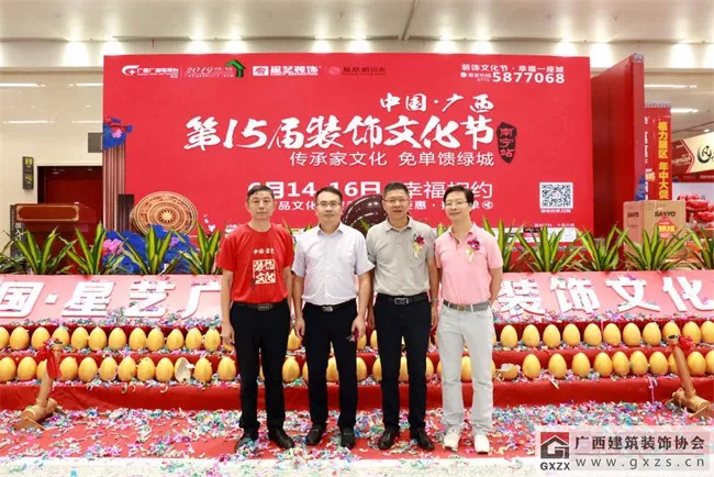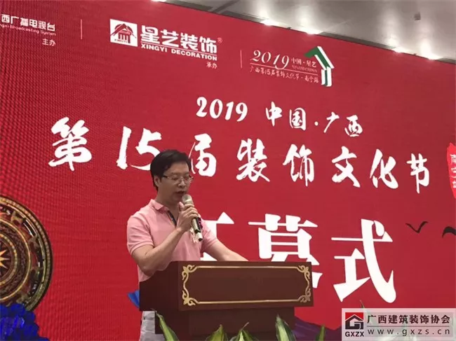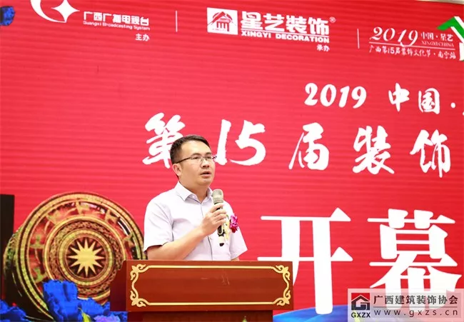 2019年6月14日,星艺装饰“2019年中国广西第十五届装饰文化节”在南宁国际会展中心盛大开幕,广西建筑装饰协会会长庞耀国应邀出席开幕式活动并致辞,祝贺星艺装饰入桂17周年,并预祝中国星艺广西第十五届装饰文化节活动圆满成功!