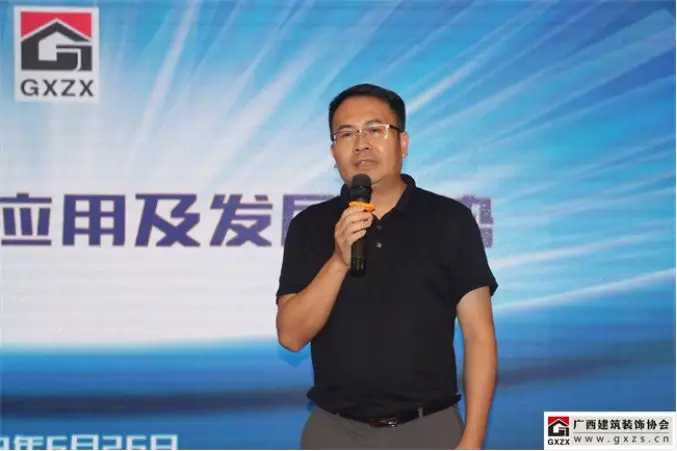 广西建筑装饰协会副秘书长兼施工委主任谭谦主持会议