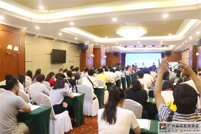 广西建筑装饰协会副秘书长兼施工委主任谭谦主持此次培训,并做“广西建筑装饰工程优质奖”及“中国建筑装饰工程优质奖”迎检工作流程和注意事项的评优经验交流。阐述了迎检工作的重要性及应对迎检工作需做的准备和细节布置等,使各企业代表受益匪浅。