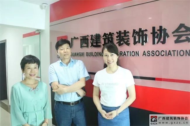 广西装配式建筑发展促进会陆和坤秘书长(中)协会支部书记、副会长兼秘书长黄雪心(右)办公室主任陈雪玲(左)