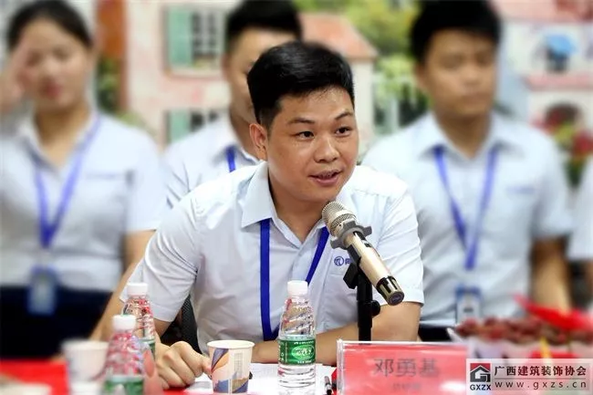 同创公司总经理邓勇基介绍了公司的创业历程和运营概况。同创公司创建于2007年,目前在南宁、玉林、柳州、桂林四个城市都有生产基地,厂房总和面积约三万八千平方米,办公室与展厅总和面积约一万平方米,是广西集成吊顶生产量最大的企业,目前有8家子属公司,除了5个生产子公司之外,还有设计、安装和电子商务服务公司。同创建材的产品在广西所有市、县、乡镇都有经销商,品牌专卖店有300家。注册在同创APP线上采购平台的客户目前统计已经有10050家,通过APP下单进货的经销商客户都能够快速便捷采购到公司产品。公司在研发着流程、管理、销售和服务体系,也在持续优化着团队的建设。