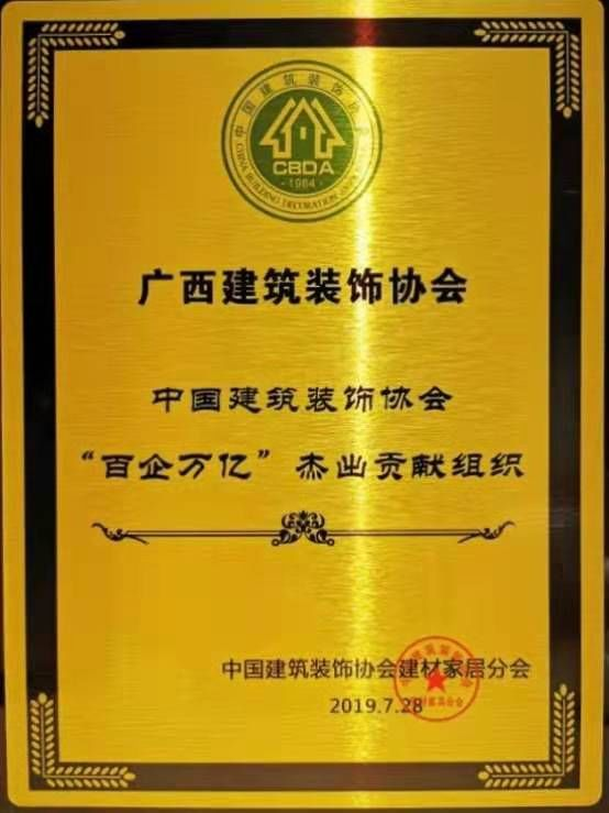 本次大会颁发了中国建筑装饰建材家居产业相关品牌奖项。广西建筑装饰协会获得了中国建筑装饰协会建材家居分会颁发的“百企万亿”杰出贡献组织奖。