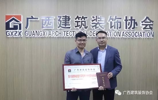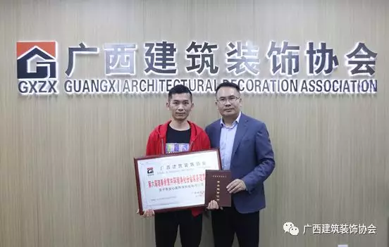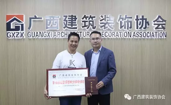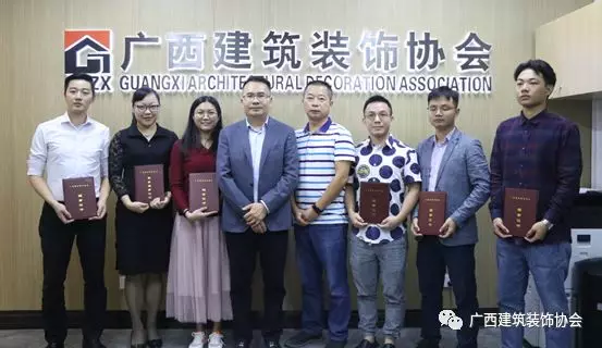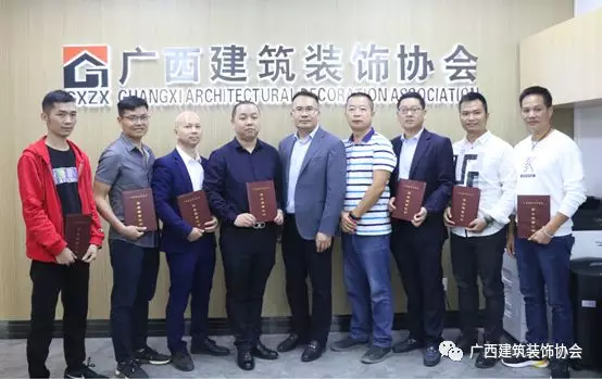 11月25日,在广西建设大厦一楼广西建筑装饰协会信息中心,协会为新入会企业举办了入会授牌仪式,为新近加入广西建筑装饰协会的广西桂川建设集团有限公司、广西南庭艺筑装饰工程设计集团有限公司、广西南宁镜子商贸有限公司、广西正丰建设集团有限公司、广西华堂装饰工程有限公司、兴华建工集团股份有限公司、广西桂平市市政工程有限责任公司及室内环境净化分会广西智洁科技有限公司、广西洁立净生物科技有限公司、广西创新建筑工程质量检测咨询有限公司、广西南宁市子然环保科技有限责任公司、广西创威环境监测有限公司、南宁市清新环保科技有限公司、南宁市安心居环保科技有限公司等共14家企业授牌颁证。