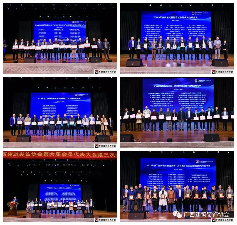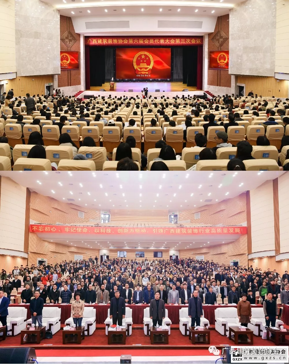 2019年12月20日,广西建筑装饰协会六届三次会员代表大会在广西建设职业技术学院大礼堂成功举办!广西建筑装饰协会会员企业代表约800多人参加会议。会议回顾了2019年广西建筑装饰行业发展进程,审议通过广西建筑装饰协会2019年工作报告,并对2020年协会工作进行部署。一批优质工程、先进企业、优秀个人在会上受到表彰。