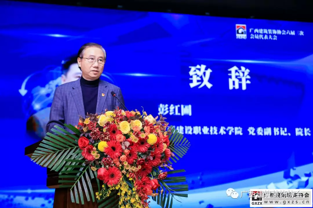 中国建筑装饰协会副会长陈新,广西住房和城乡建设厅党组成员、副厅长杨绿峰,广西建设职业技术学院院长彭红圃,广西民政厅社会组织管理局徐虎明,广西住房和城乡建设厅机关党委专职副书记、行业党委常务副书记叶旭明,广西住房和城乡建设厅机关党委副调研员、行业党委副书记、纪委书记邹丽萍出席会议。