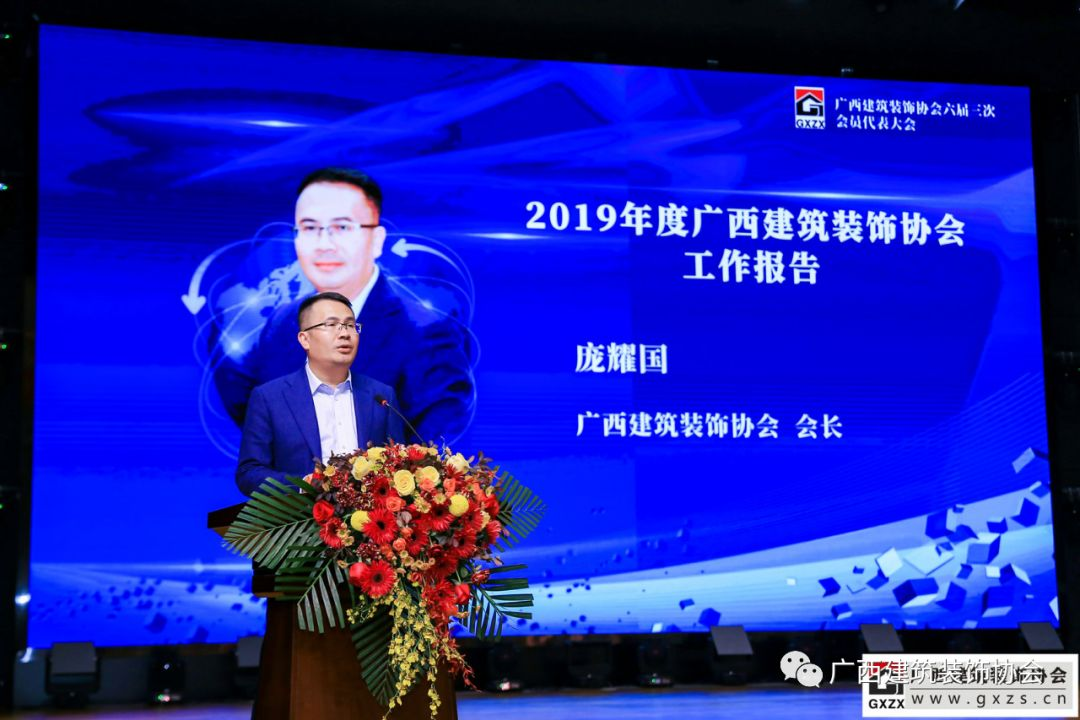 庞耀国会长作2019年度协会工作报告。报告指出:2019年,广西建筑装饰协会深入贯彻落实党的十九大精神,着力管理创新、推动科技进步,充分发挥行业服务、行业自律、行业协调、行业代表等职能作用,与行业发展同呼吸、共命运,在做好日常服务的同时,加强对发展方向、重要工作和解决重点问题的引导,引领我区建筑装饰行业高质量发展,在自治区民政厅开展的全区性社会组织评估工作中,再次获评五A级社会组织。2020年,我国将达成全面建成小康社会的目标。乘此东风,协会工作也将创新思路,迎接新机遇、新挑战。2020年广西建筑装饰协会的主要工作思路:一是进一步加强党建工作。以习近平新时代中国特色社会主义思想及党的十九大精神为指导,坚持党的领导。倡导会员单位承担社会责任,积极参与”党旗领航、住建圆梦“和精准脱贫攻坚等活动,提高会员美誉度和荣誉感,扩大协会的社会影响力和知名度。二是进一步加强协会建设。以会员为中心,依章办会,充分发挥桥梁和纽带的作用,提振协会秘书处干事创业精气神,着力增强协会的亲和力、凝聚力和影响力。三是加强校企合作,建设好高校专委会。协会将紧紧围绕为企业服务、为行业服务、为职业院校服务这个基本点,不断拓展服务内容,创新服务方式,提高服务水平。四是开展行业调研和会员走访,反映行业合理诉求,维护会员单位合法权益。五是做好多样化、全方位服务。按照高质量发展的要求,加强行业绿色引领和创新驱动,加快转型升级,提高企业在专业细分市场中的竞争力;为企业多创广西建筑装饰工程优质奖、争创中国建筑工程装饰奖和行业“高精尖”项目,组织专家咨询、技术上门服务,组织会员单位参加优质、精品工程观摩和相关论坛学习。协会牵头会员单位参与行业标准化建设。组织推动绿色装修产业链的积极联动和项目对接工作,促进装修、地产、部品材料企业共同合作发展。六是组织创先争优活动,提升企业品牌。七是规范会员行为,加强行业诚信建设。开展信用等级评定,并将评定情况向社会公布。继续做好我区企业参加中装协“全国建筑装饰行业信用评价”工作初审(初评、复评)上报工作。八是注重行业交流合作,创造对接机会。创造同行企业之间资源共享、合作共赢的平台与机会。九是发挥行业专家的作用,开展培训教育。做好《广西全装修住宅室内装饰装修工程质量验收规范》、《广西全装修住宅室内装修设计标准》的宣贯工作。做好人才储备,提高队伍素质,增强企业发展后劲。十、开展行业数据统计工作。研究数据统计规划和安排,以统计我区建筑装饰十强企业的经营数据做为起点,建立科学、权威的行业统计数据平台,要使统计数据的采集更加广泛和精准,成为协会对行业指导和发展的最重要抓手。十一是树立办会宣传新思维,倡导新文风。利用新兴媒体传播影响力,办好协会会刊、网站、微信公众号、抖音号,不断提高协会的公信力和影响力。