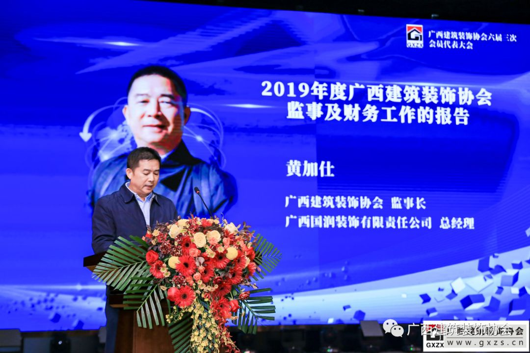 协会监事长黄加仕作2019年度广西建筑装饰协会监事及财务工作的报告。报告认为协会理事会按年度工作计划较好的完成了各项既定工作目标,认真执行《民间非营利组织会计制度》,遵守财经纪律,财务制度健全,各项收支真实,财务支出节俭,账务清楚,运作规范。
