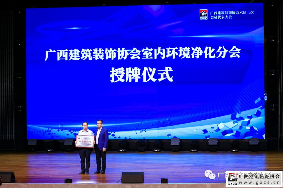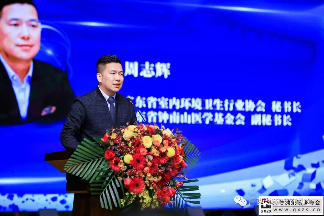 庞耀国会长为新设立的室内环境净化分会授牌。广东省室内环境卫生行业协会秘书长周志辉介绍了室内环境净化行业的发展趋势。