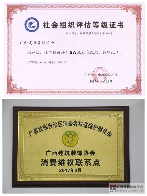 匠心沉淀、初心不改。作为广西建筑装饰行业唯一的五A级社会组织,广西消费者权益保护委员会授权的行业消费维权联系点,广西建筑装饰协会将凝聚行业办量,共担社会职责,引导我区建筑装饰行业加强自律、规范发展,不断提升产品和服务质量,形成企业守规、行业自律、百姓放心、消费舒心的消费环境,助力发挥消费的基础性作用,助推经济社会高质量发展。