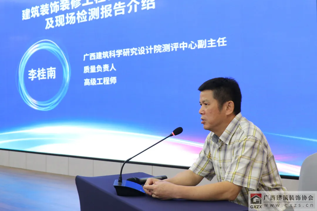 广西建筑科学研究设计院测评中心副主任、质量负责人、高级工程师——李桂南,讲述了“建筑装饰装修工程材料进场复检及现场检测报告介绍”。