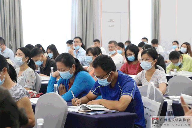 广西建筑装饰协会会长庞耀国,党支部书记、副会长兼秘书长黄雪心,副秘书长兼施工委主任谭谦等协会领导出席了本次培训。