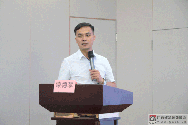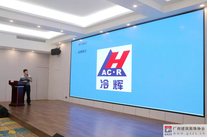 南宁冷辉空调冷冻技术服务有限公司综合办主任蒋林华、广西南宁海蓝建筑设计咨询有限公司总经理韦泽湖受邀在会上分别做了题为《冷辉企业品牌战略》和《从工业化装饰装修到装配式迈步——成品隔断》的演讲。