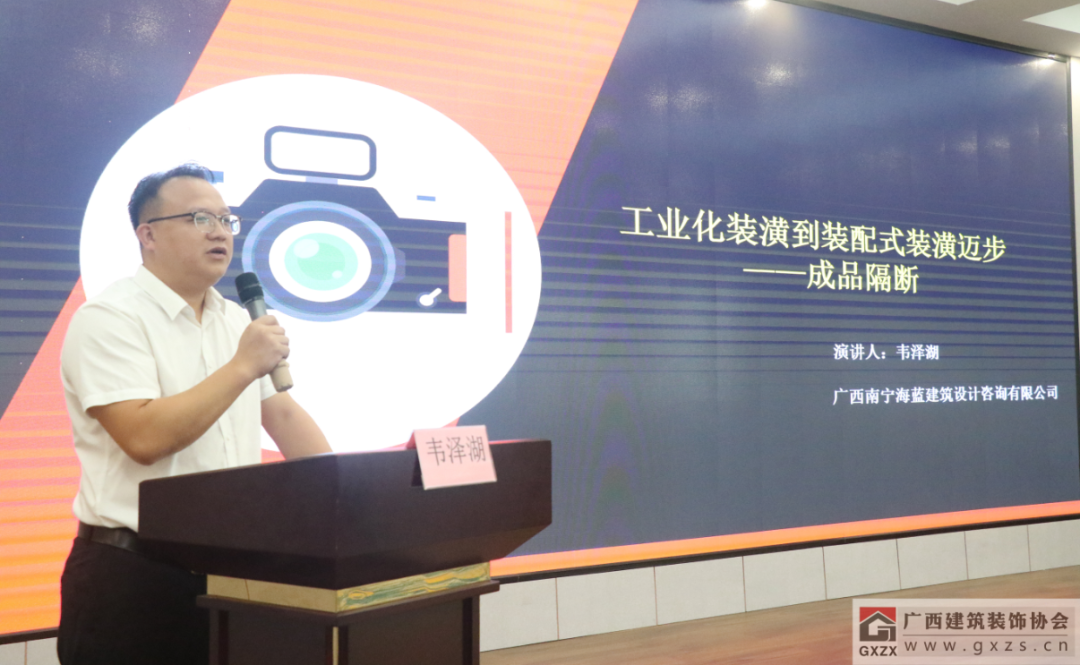 广西南宁海蓝建筑设计咨询有限公司总经理 韦泽湖 做《从工业化装饰装修到装配式迈步——成品隔断》演讲