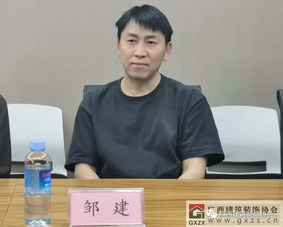 协会党支部书记、副会长兼秘书长黄雪心(左),副会长、广西呈美建筑装饰集团有限公司董事长兼总经理黄运东(中),监事长、广西英泰装饰有限公司董事长黄加仕(右)陪同专家组一行参观了协会秘书处新办公地点并座谈。