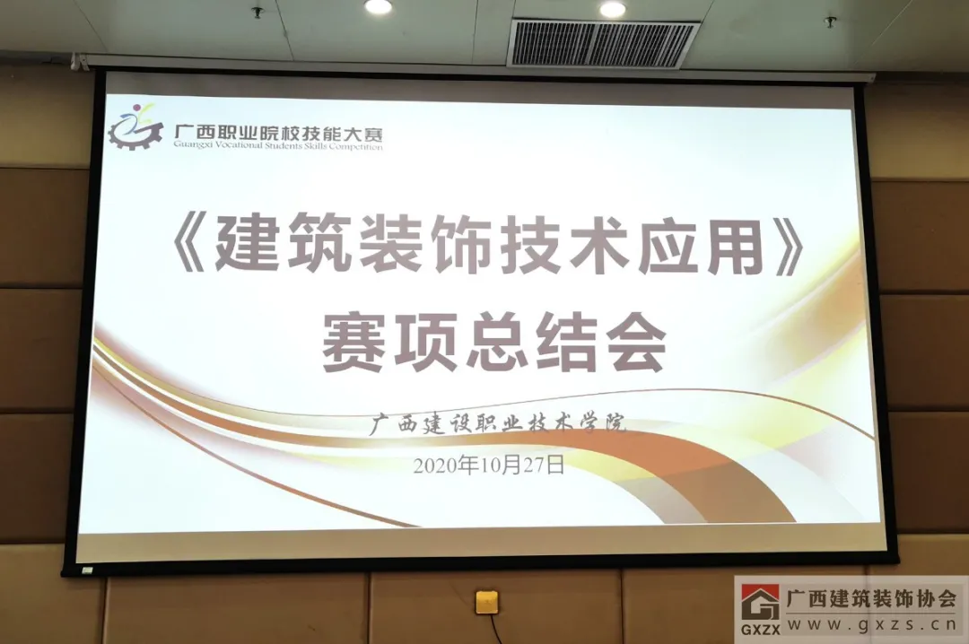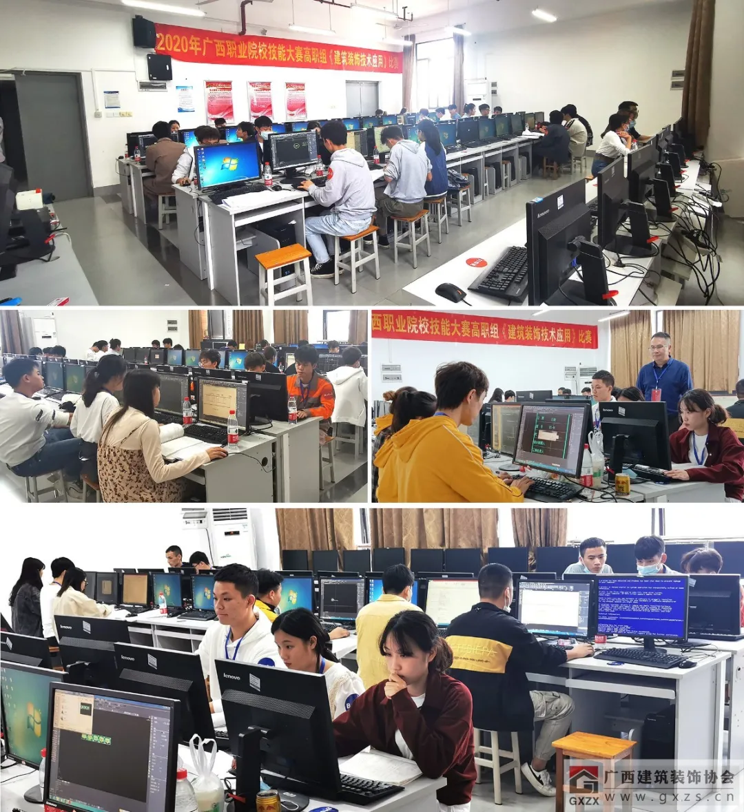 由广西教育厅主办的2020年广西职业院校技能大赛高职组《建筑装饰技术应用》的赛项,于2020年10月26日上午,在广西建设职业技术学院举行,广西建筑装饰协会派出多位专家作为裁判组成员,协助了这次比赛。他们分别是裁判长:庞耀国会长;裁判组成员:协会副秘书长谭谦、广西华蓝建筑装饰工程公司董事长朱建宇、广西呈美建筑装饰集团副总经理陈良勇、广西城乡规划设计院装饰所所长刘星华、广西建工集团桂港建筑装饰工程公司副总工程师李耿东、广西建科院装饰所副所长邹诗毅。