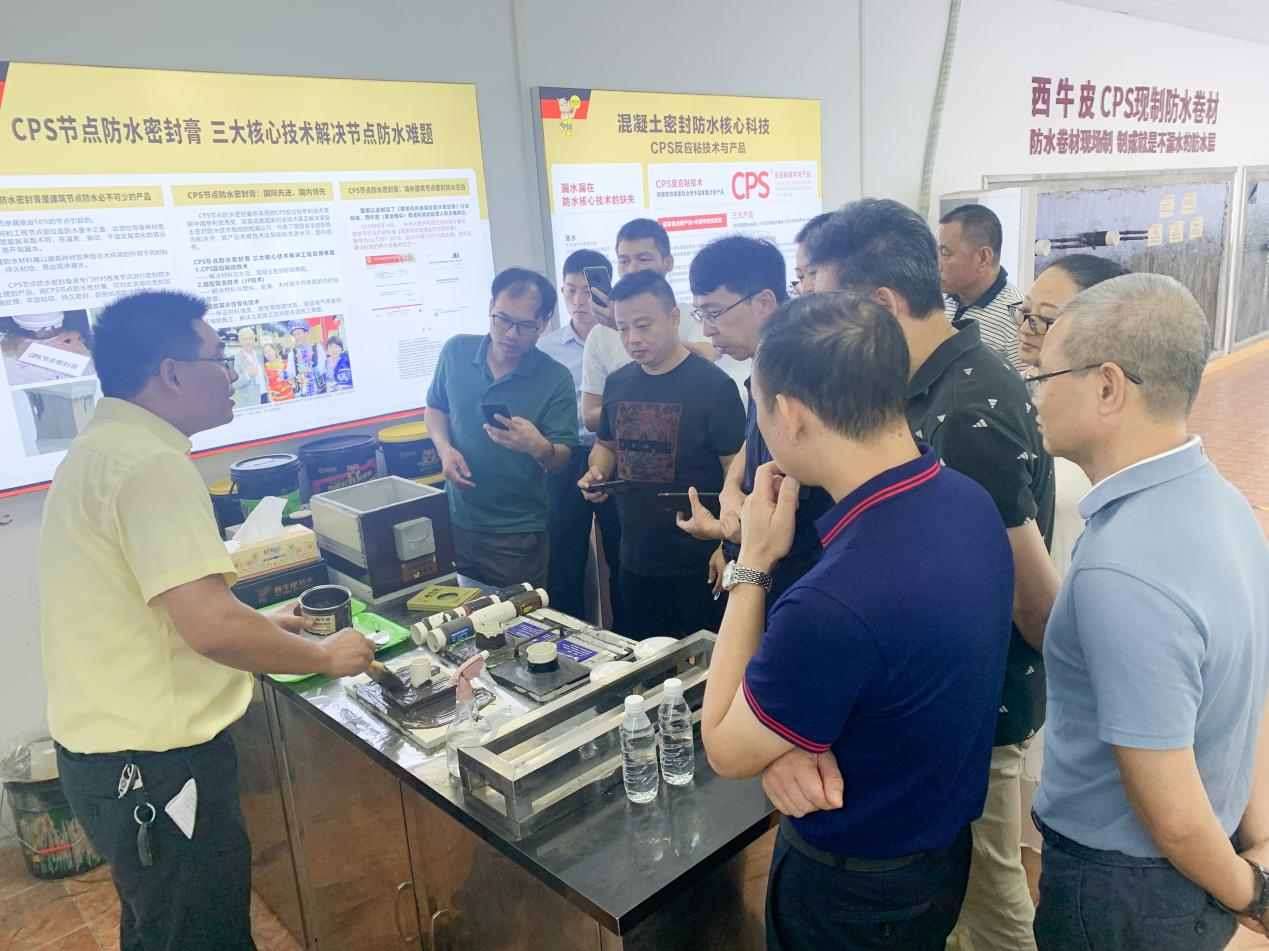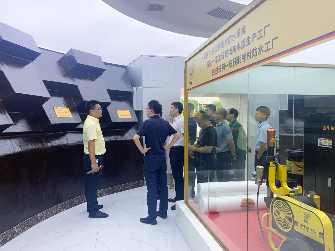 会前,参会人员集体参观了西牛皮科技园区的CPS反应粘体验中心,荣誉展厅,CPS反应粘生产线,311防水研究院,橡皮金展厅,对西牛皮公司在防水科技方面的探索和成果有了更为直观的认识。